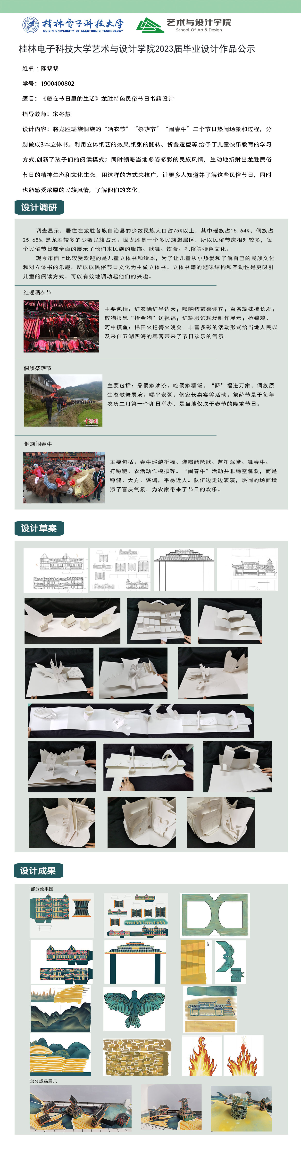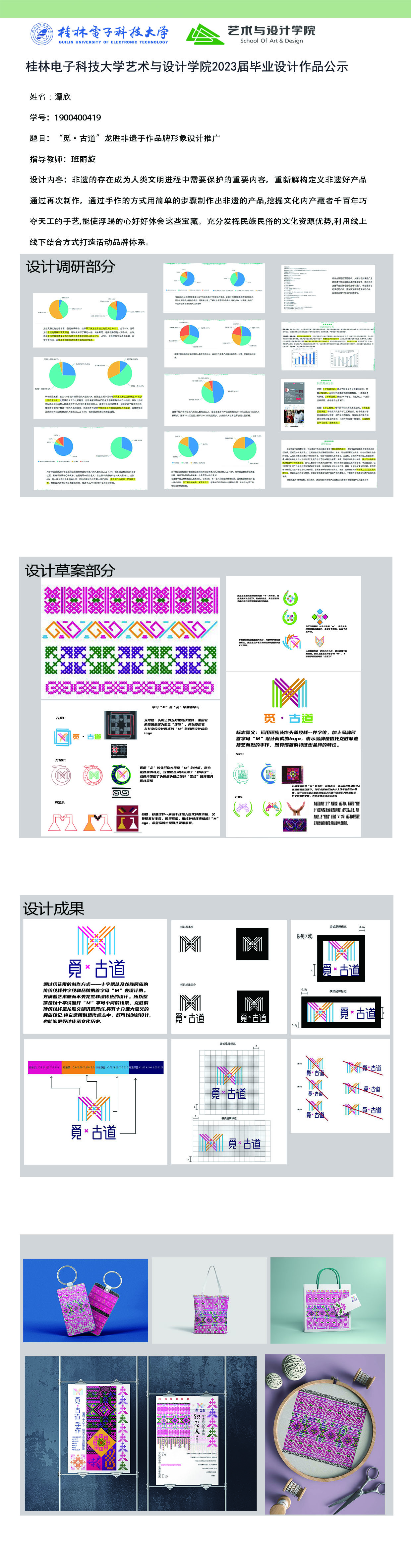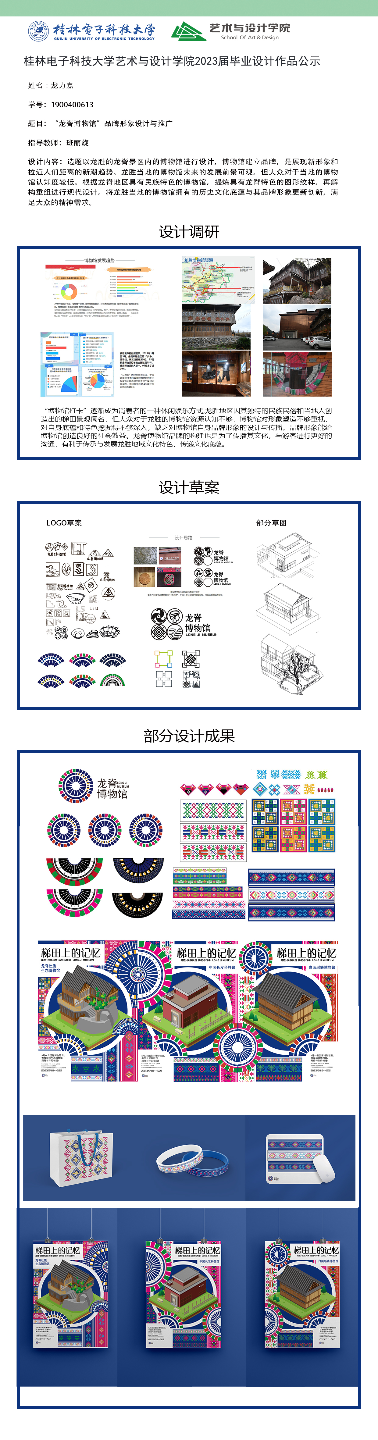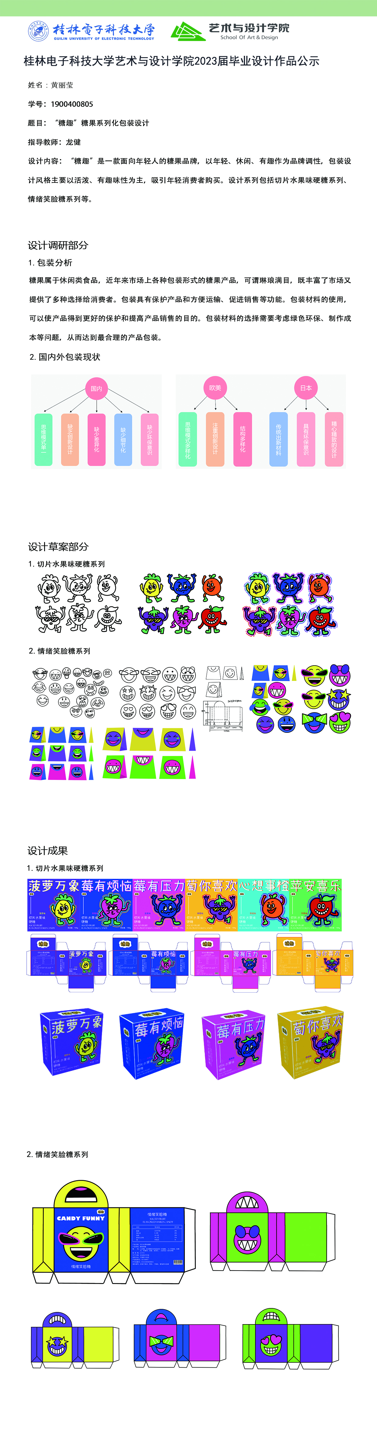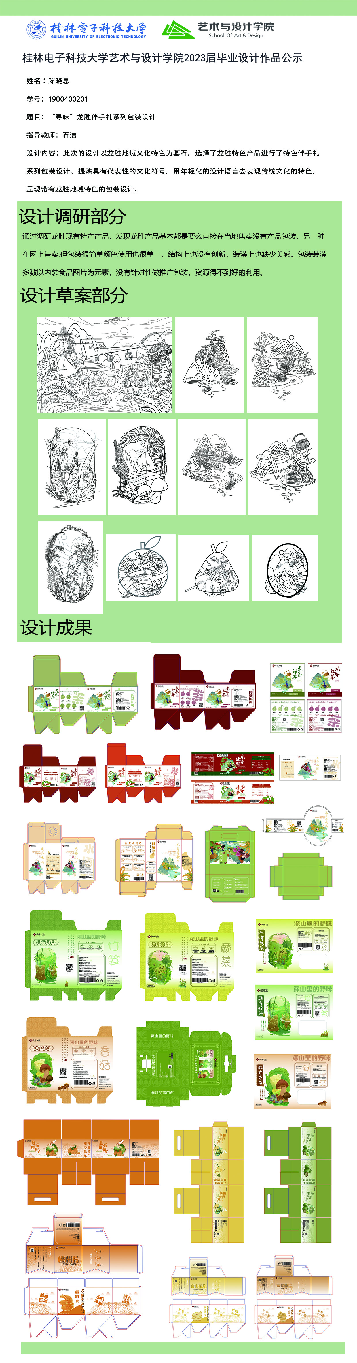 根据毕业设计管理文件规定,现将2023届视觉传达设计专业毕业设计作品进行公示。对所公示的作品如有疑议,请实名举证。公示期为三天(2023.04.20-2023.04.22)。作品公示期间的意见反馈邮箱:4575145@qq.com,联系电话:18677370501。