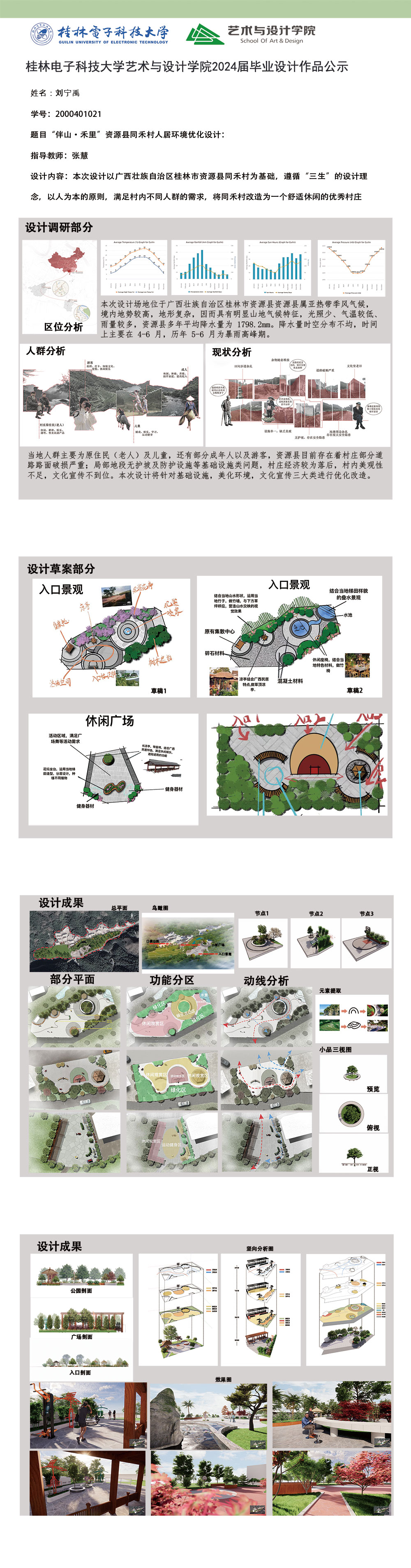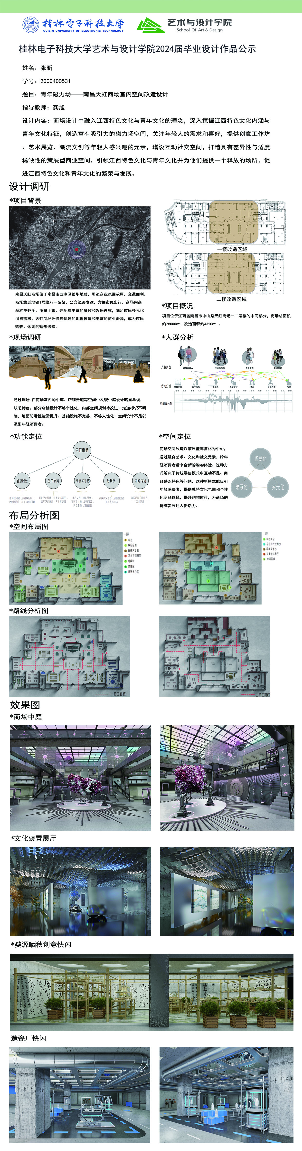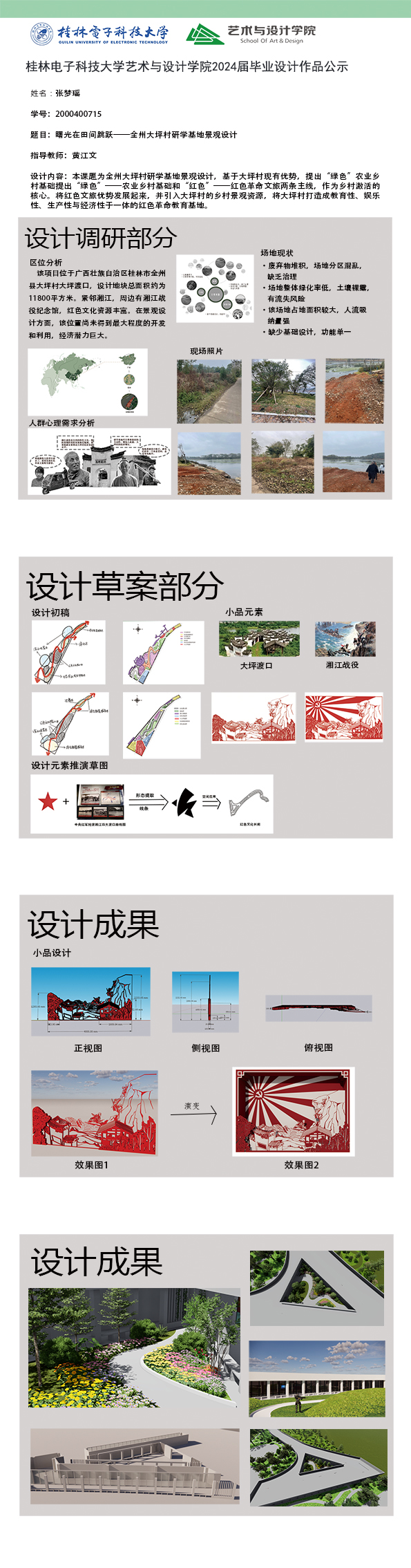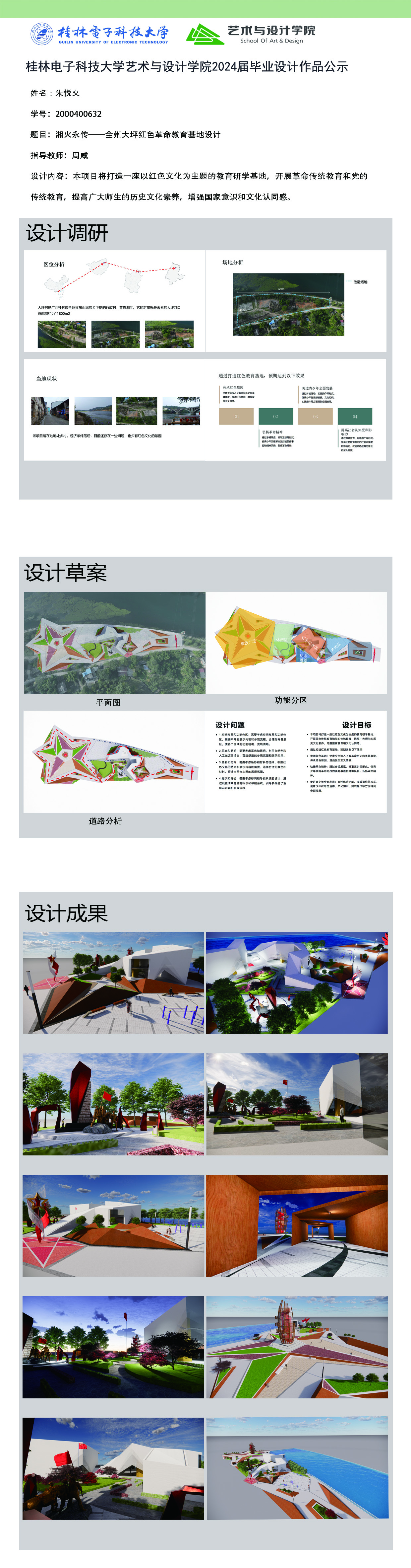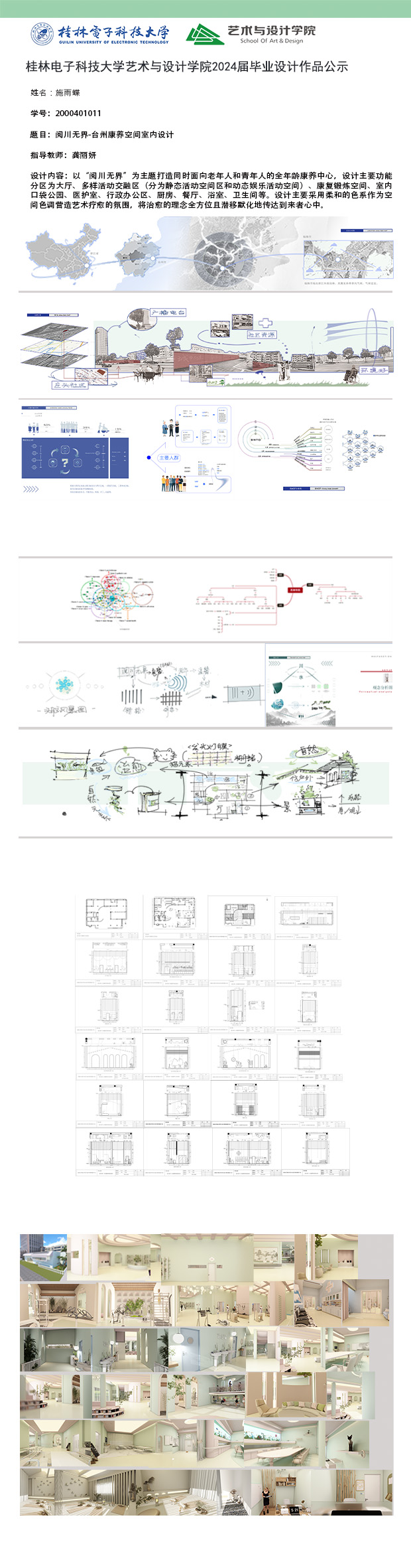 根据毕业设计管理文件规定,现将2024届环境设计专业毕业设计作品进行公示。对所公示的作品如有疑议,请实名举证。公示期为三天(2024.04.24-2024.04.26)。作品公示期间的意见反馈邮箱:19059776@qq.com,联系电话:13457651975。