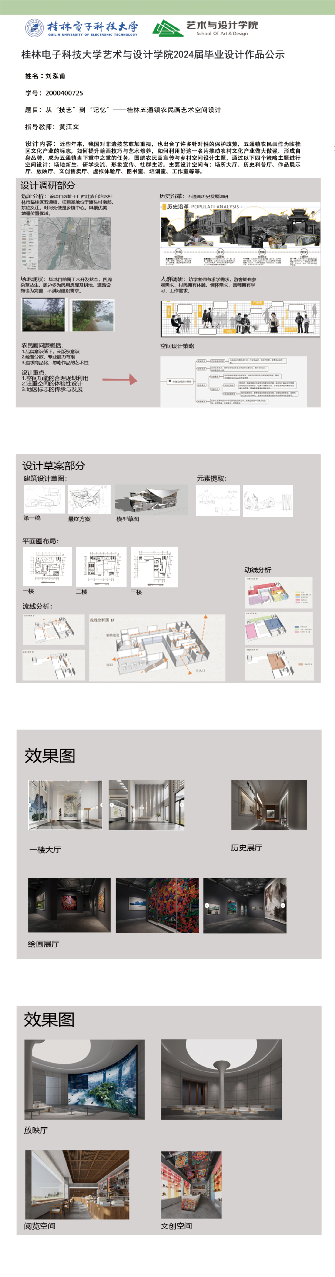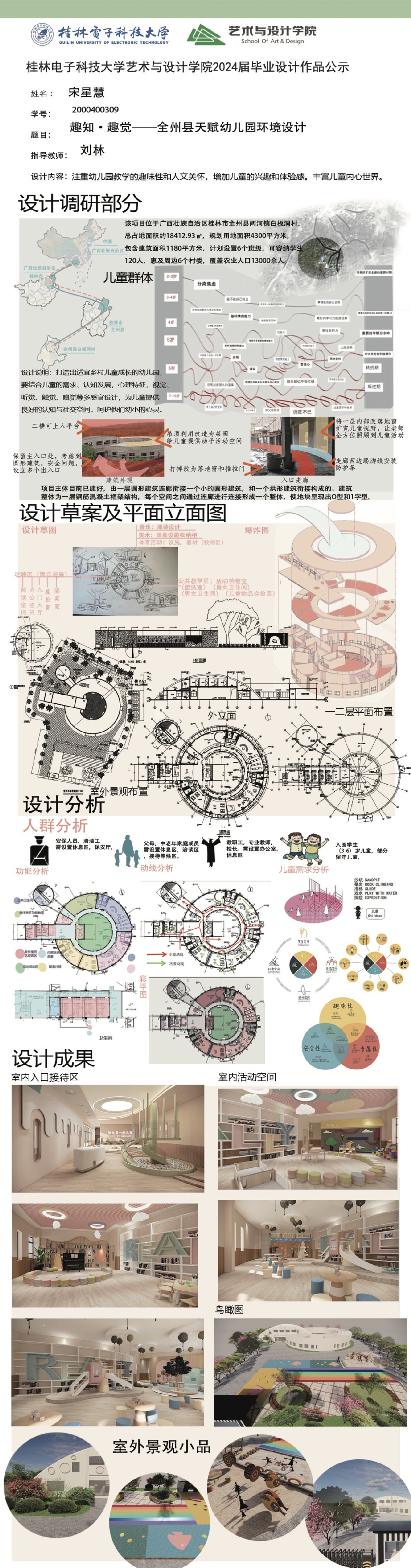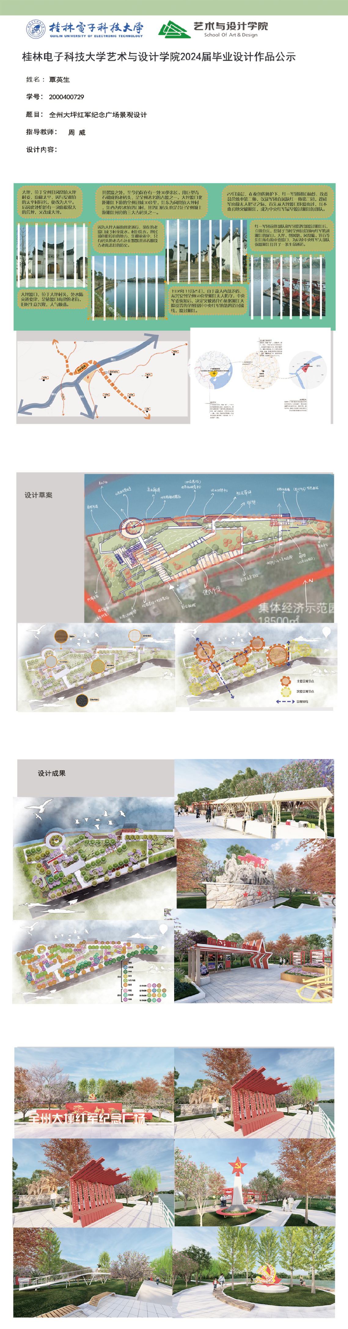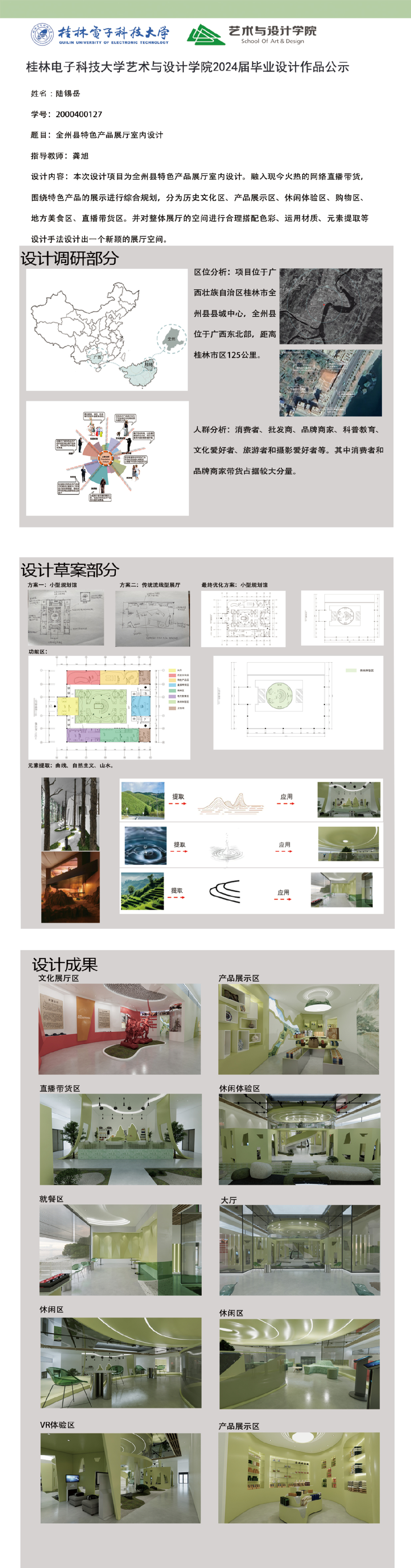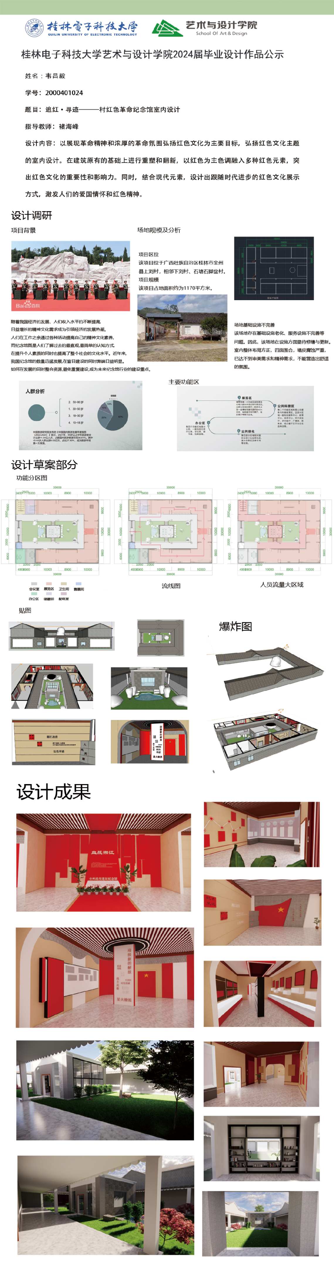 根据毕业设计管理文件规定,现将2024届环境设计专业毕业设计作品进行公示。对所公示的作品如有疑议,请实名举证。公示期为三天(2024.04.24-2024.04.26)。作品公示期间的意见反馈邮箱:19059776@qq.com,联系电话:13457651975。