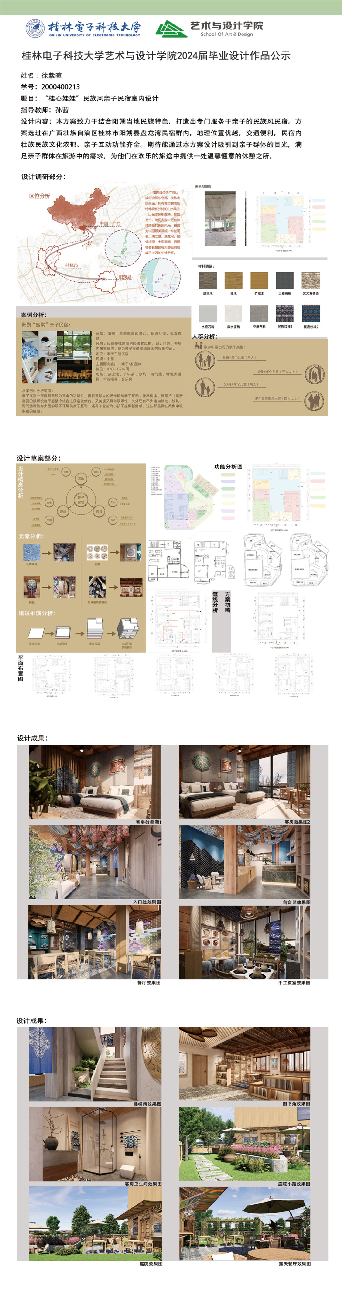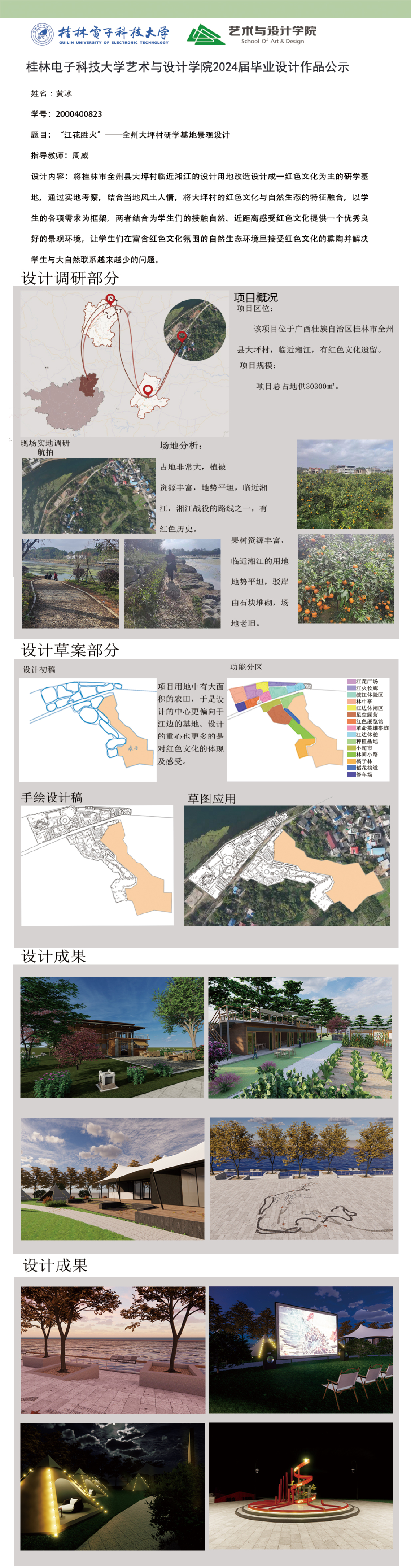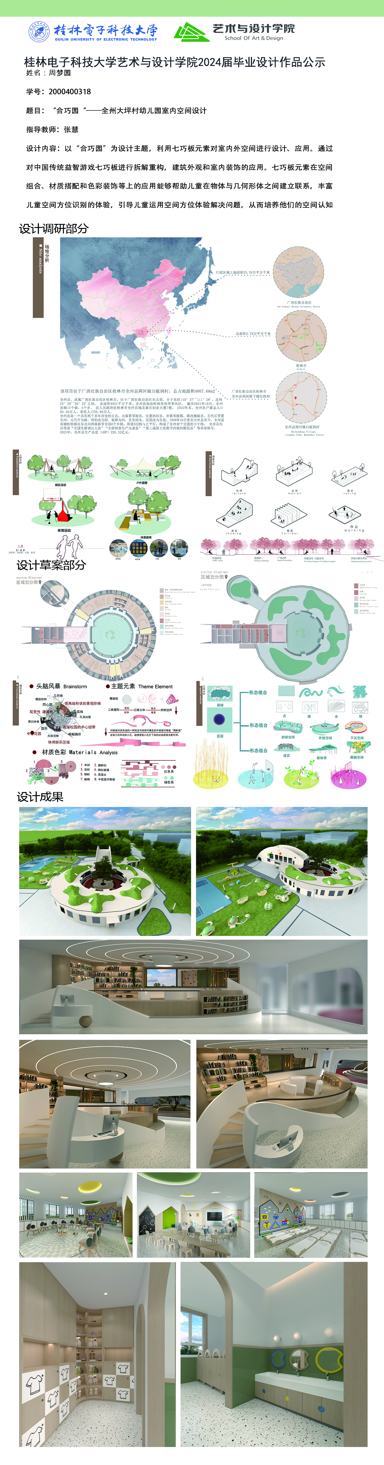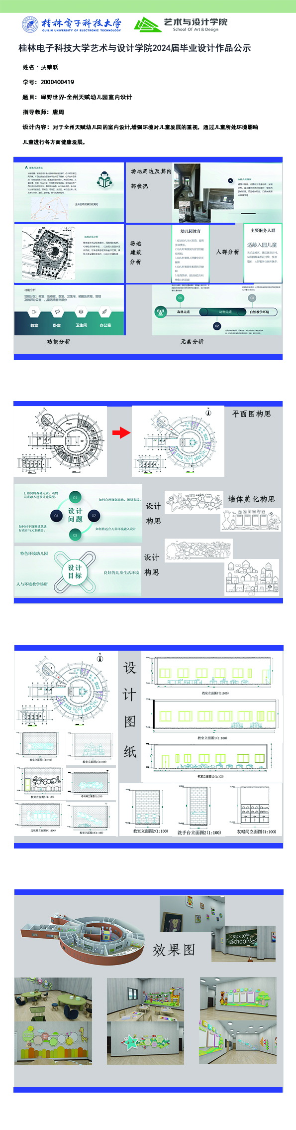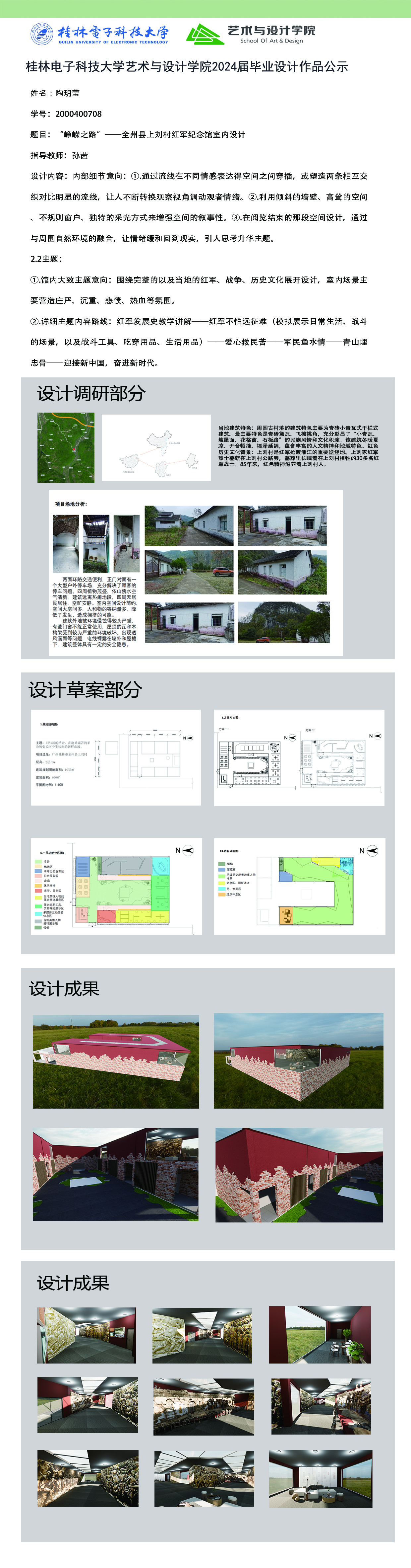 根据毕业设计管理文件规定,现将2024届环境设计专业毕业设计作品进行公示。对所公示的作品如有疑议,请实名举证。公示期为三天(2024.04.24-2024.04.26)。作品公示期间的意见反馈邮箱:19059776@qq.com,联系电话:13457651975。