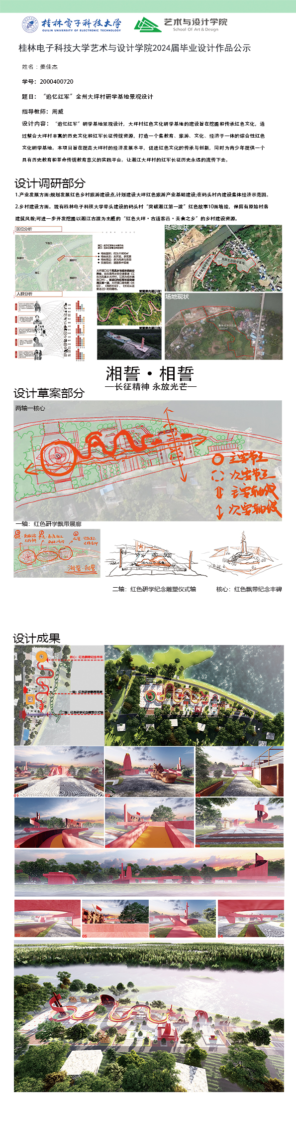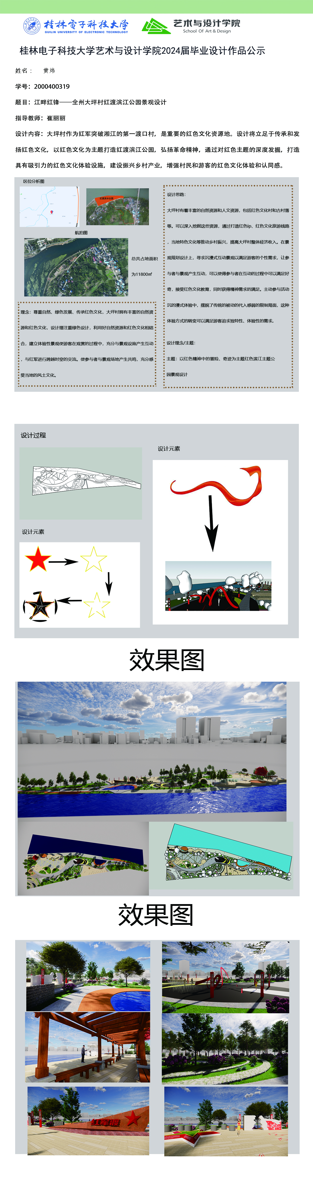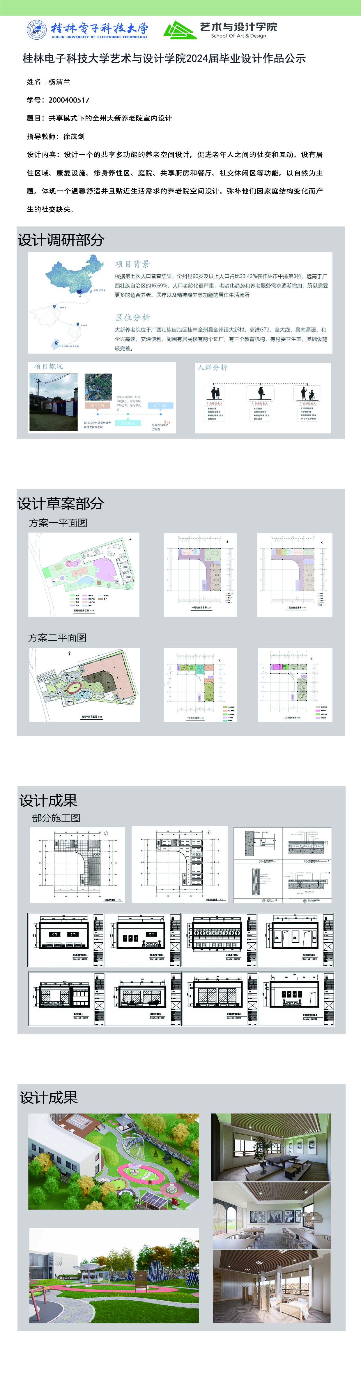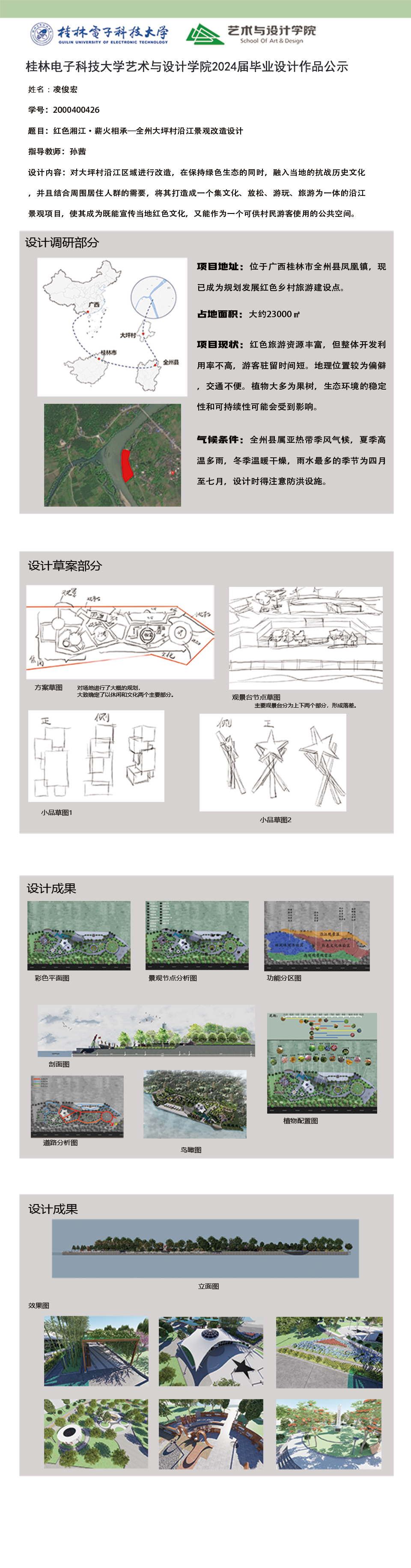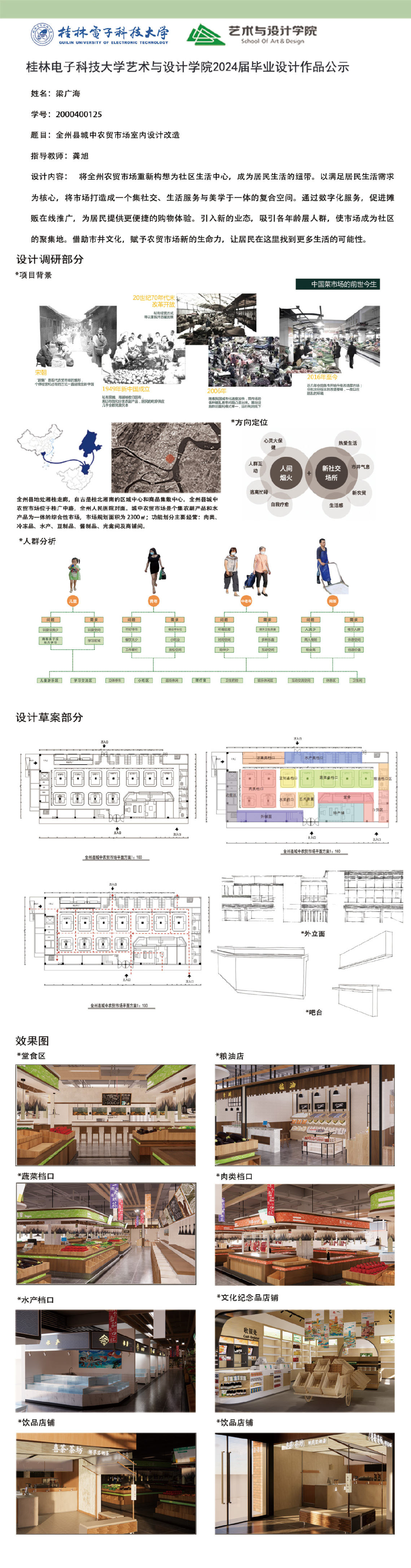根据毕业设计管理文件规定,现将2024届环境设计专业毕业设计作品进行公示。对所公示的作品如有疑议,请实名举证。公示期为三天(2024.04.24-2024.04.26)。作品公示期间的意见反馈邮箱:19059776@qq.com,联系电话:13457651975。