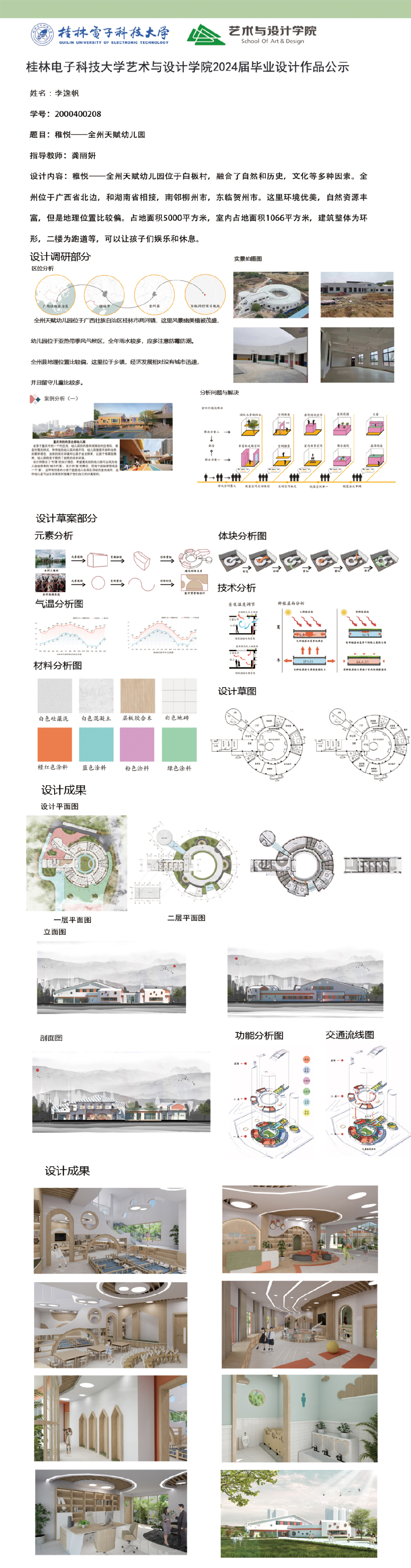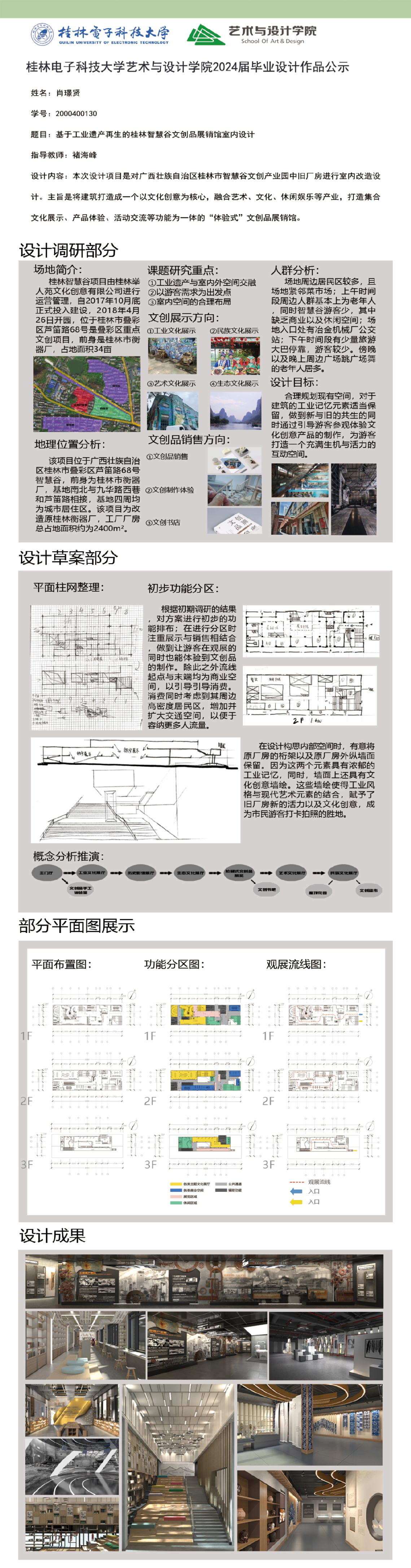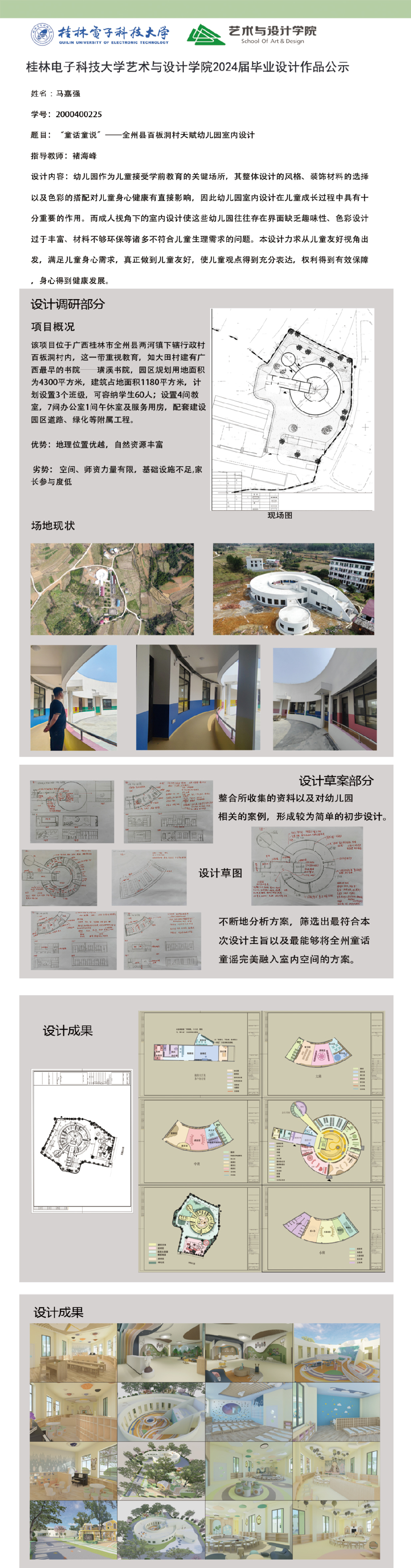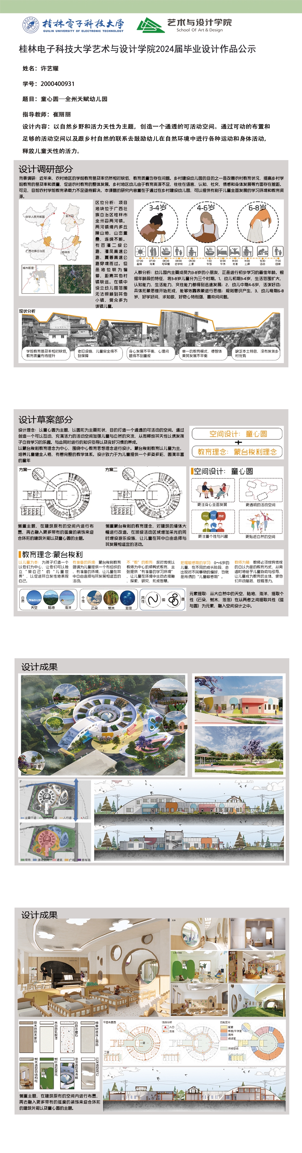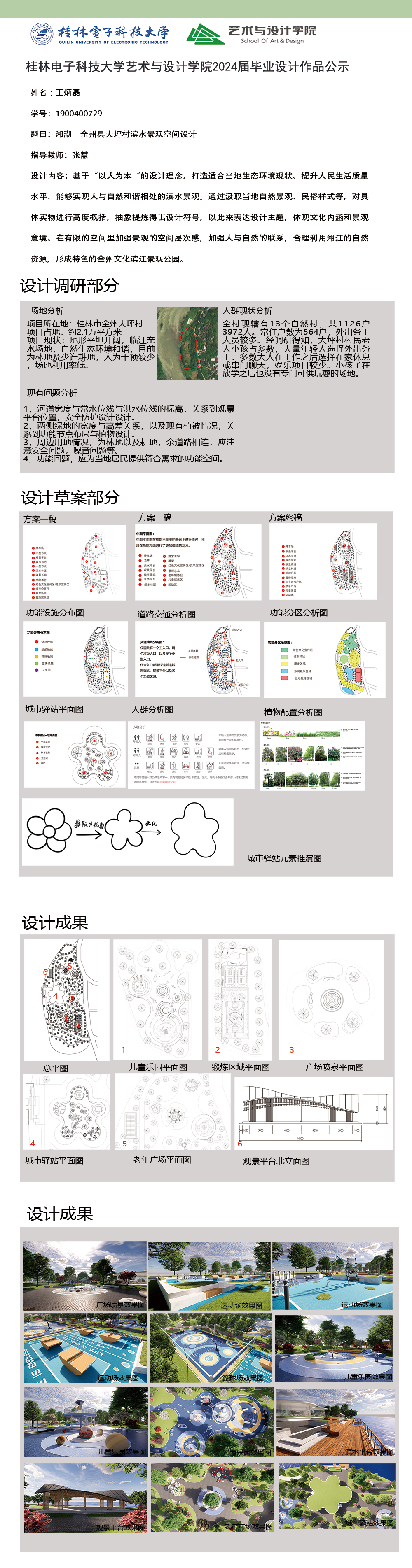 根据毕业设计管理文件规定,现将2024届环境设计专业毕业设计作品进行公示。对所公示的作品如有疑议,请实名举证。公示期为三天(2024.04.24-2024.04.26)。作品公示期间的意见反馈邮箱:19059776@qq.com,联系电话:13457651975。