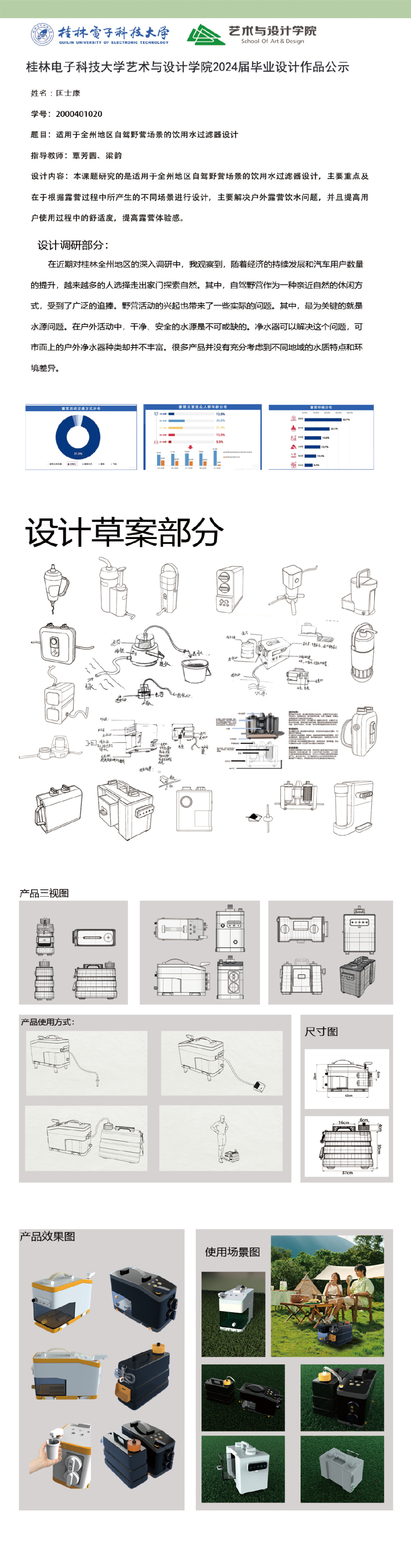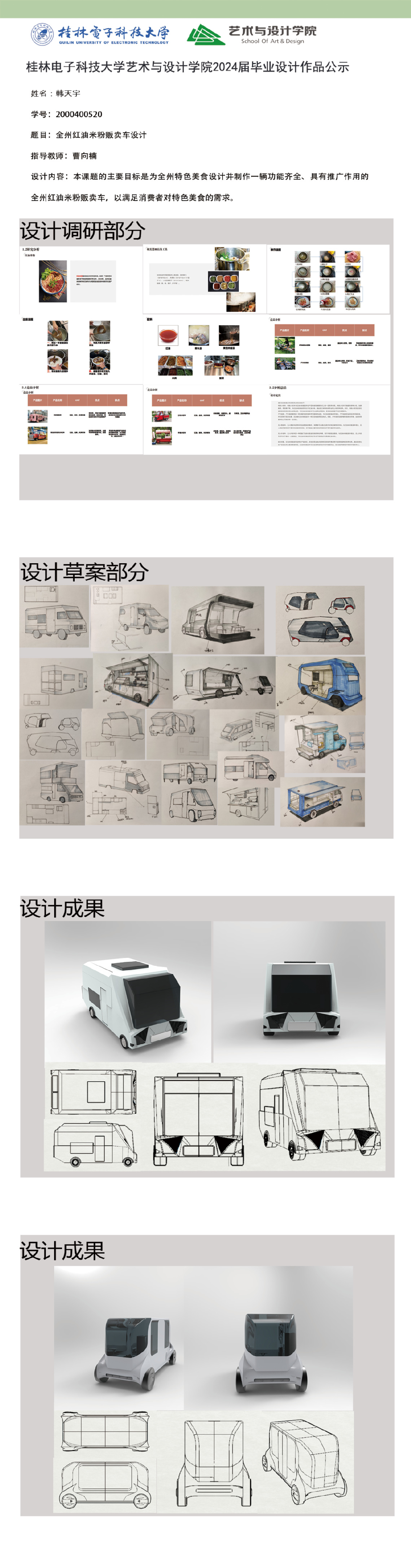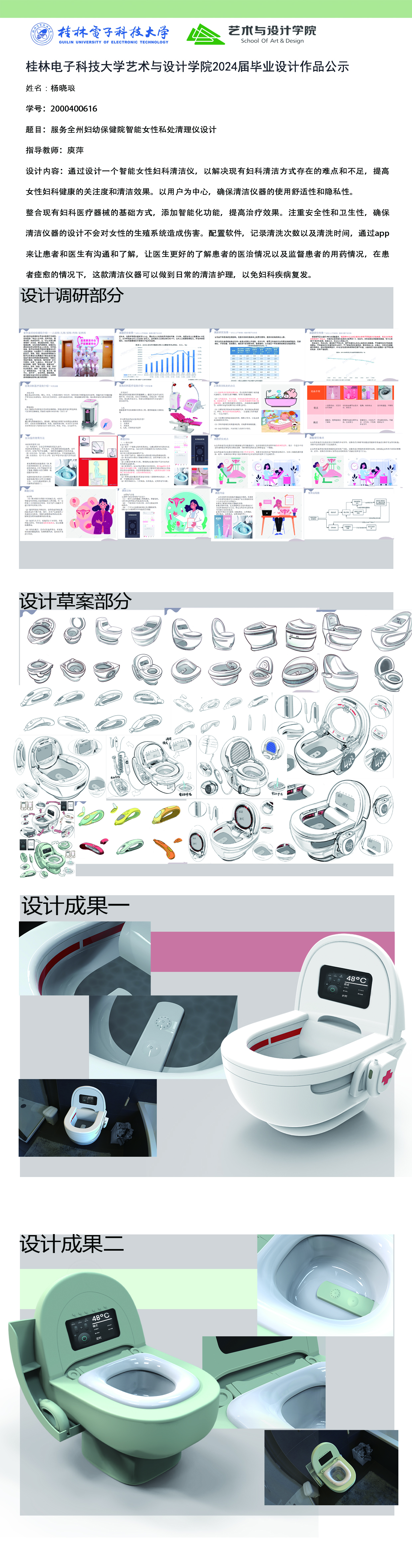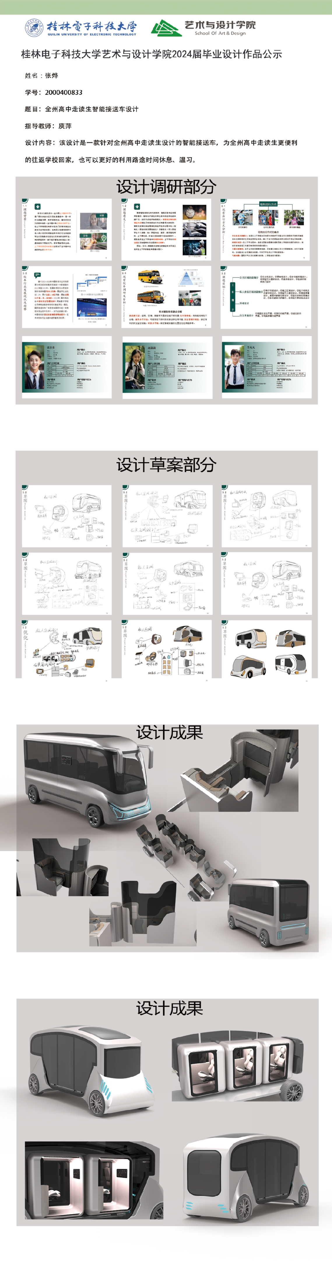 根据毕业设计管理文件规定,现将2024届产品设计专业毕业设计作品进行公示。对所公示的作品如有疑议,请实名举证。公示期为三天(2024.04.25-2024.04.27)。作品公示期间的意见反馈邮箱:360758122@qq.com,联系电话:18978660487。