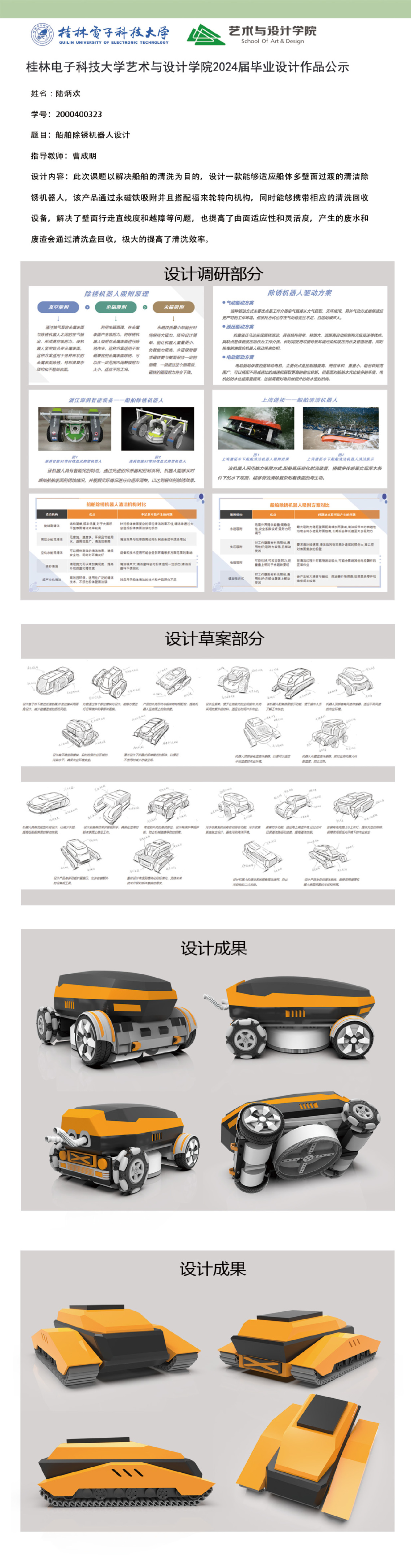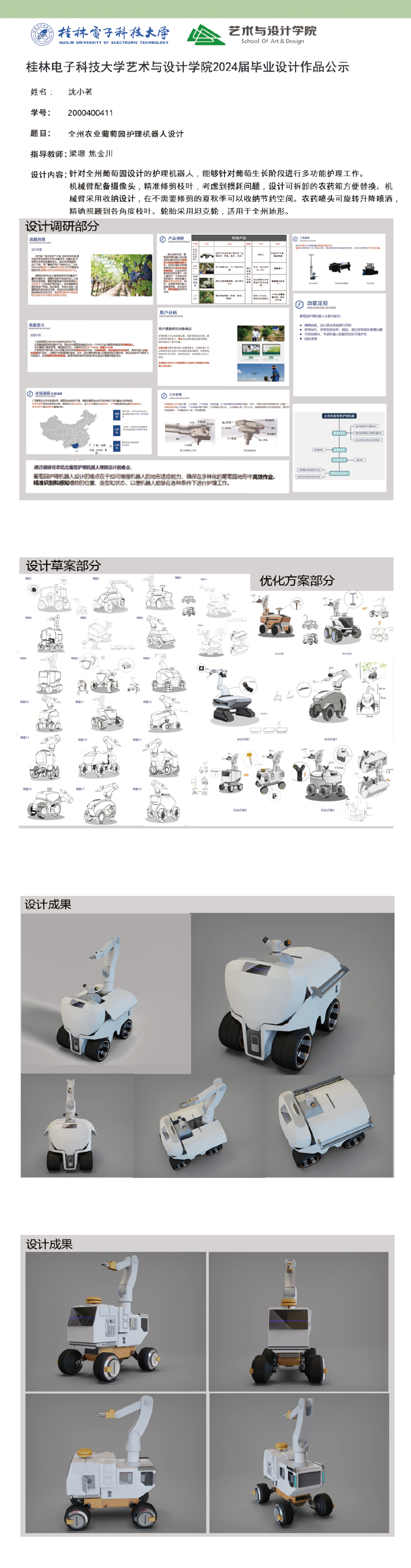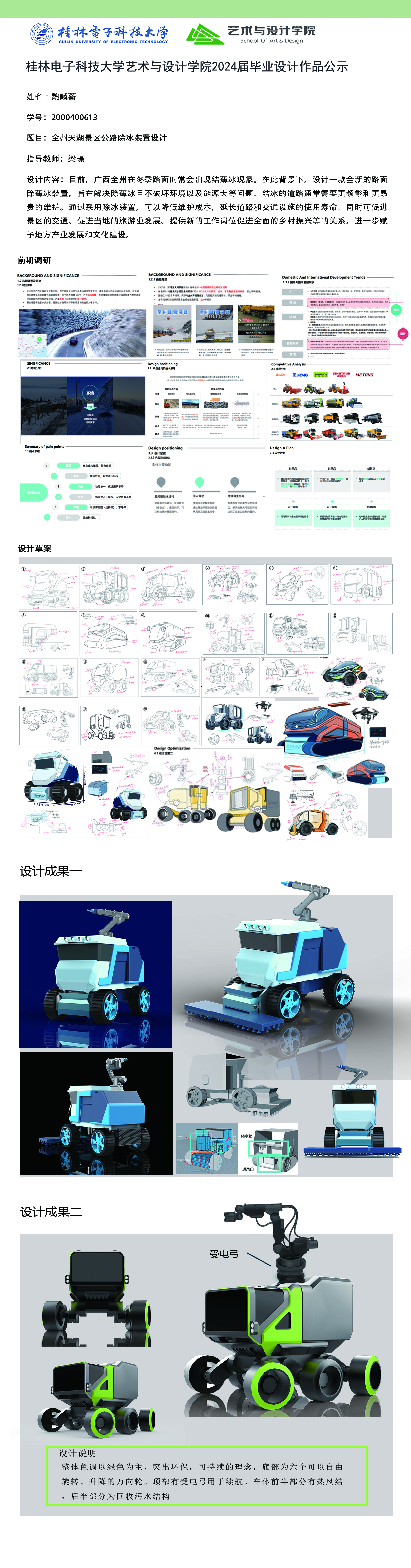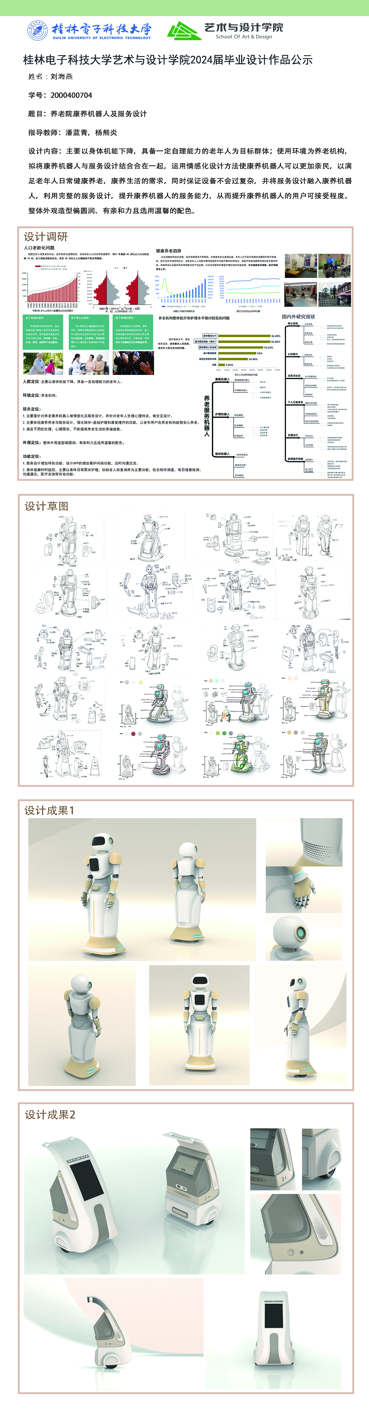 根据毕业设计管理文件规定,现将2024届产品设计专业毕业设计作品进行公示。对所公示的作品如有疑议,请实名举证。公示期为三天(2024.04.25-2024.04.27)。作品公示期间的意见反馈邮箱:360758122@qq.com,联系电话:18978660487。