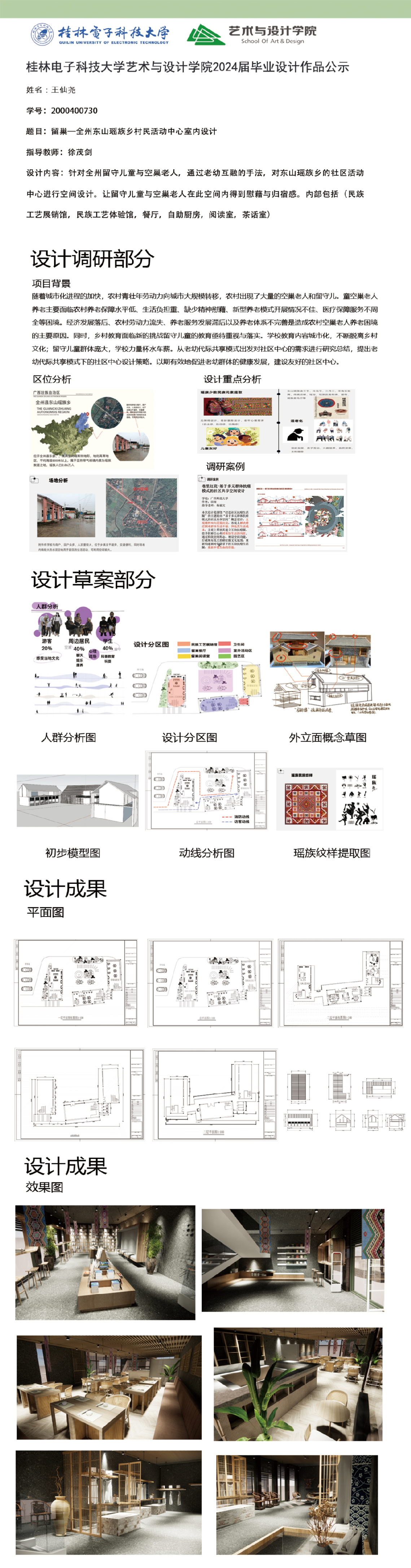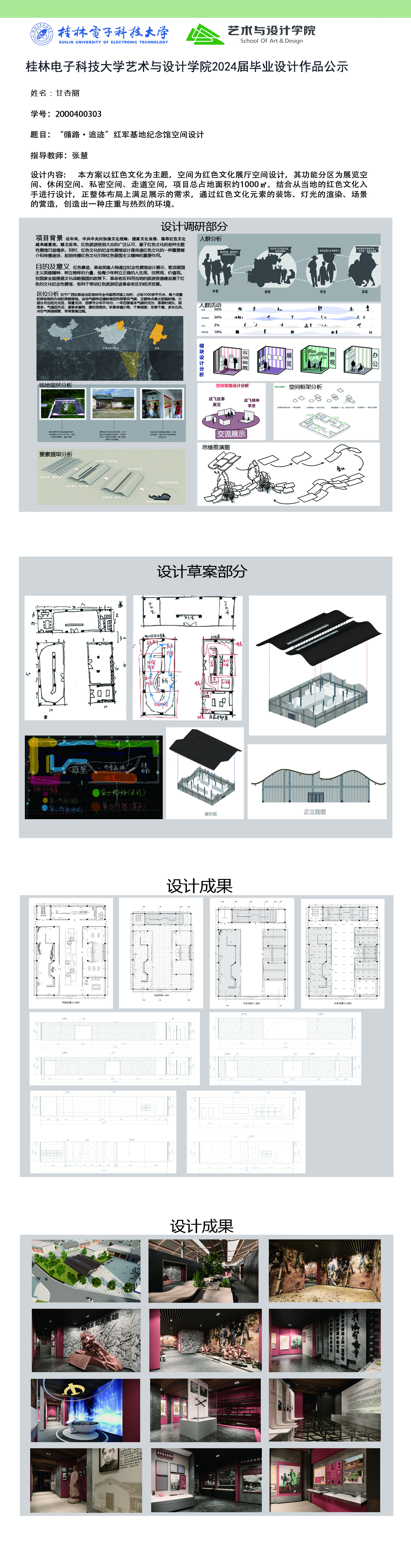 根据毕业设计管理文件规定,现将2024届环境设计专业毕业设计公示作品有错漏信息的进行更正公示。对公示的更正作品如有疑议,请实名举证。意见反馈邮箱:19059776@qq.com,联系电话:13457651975。