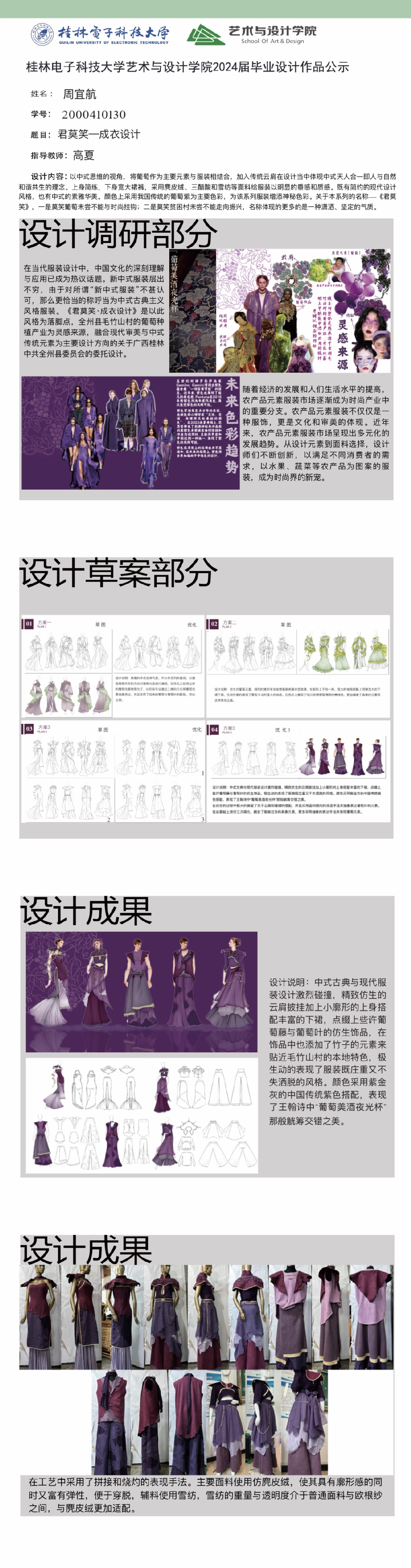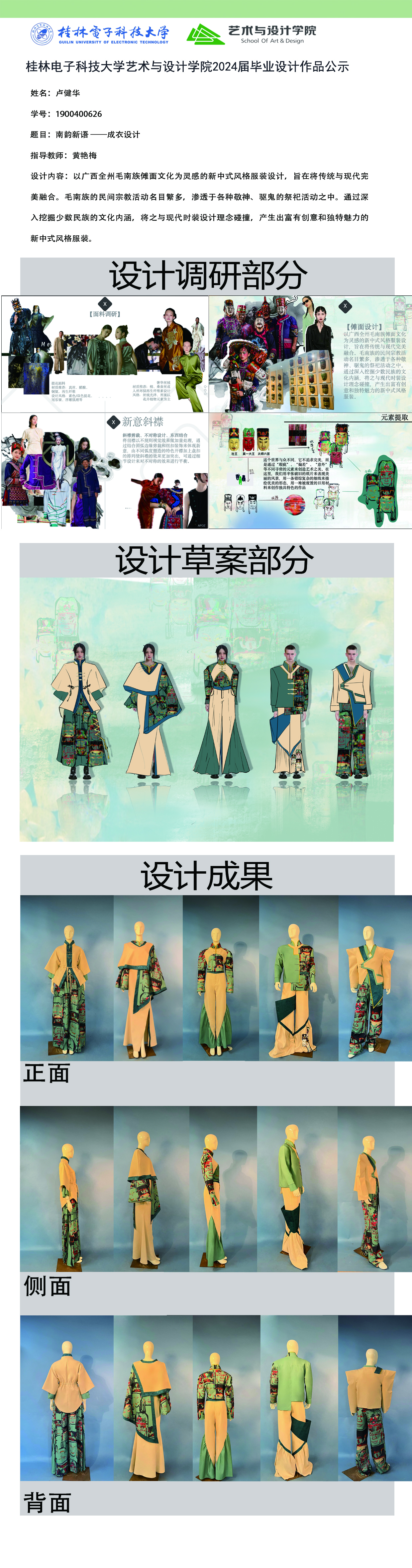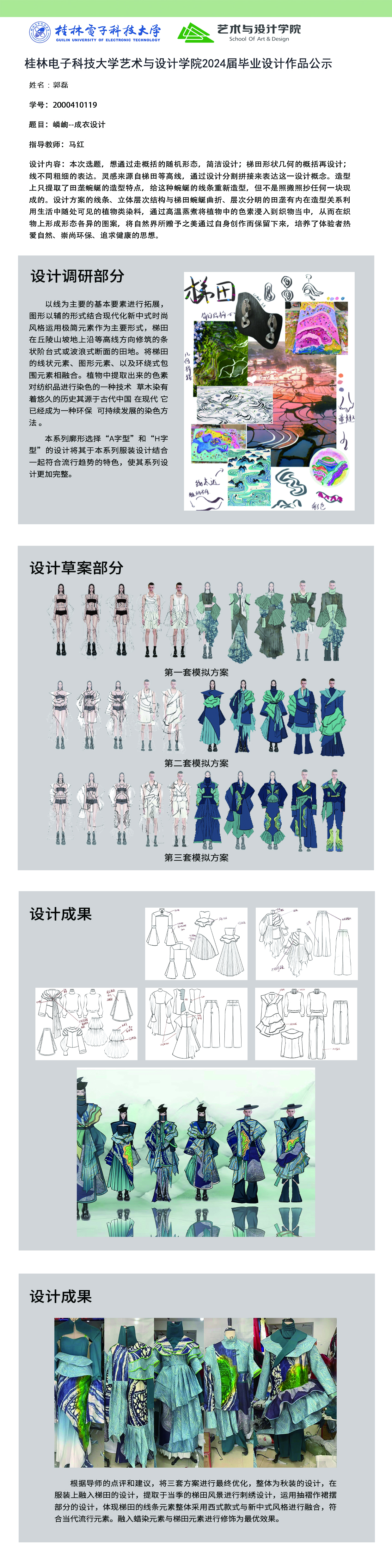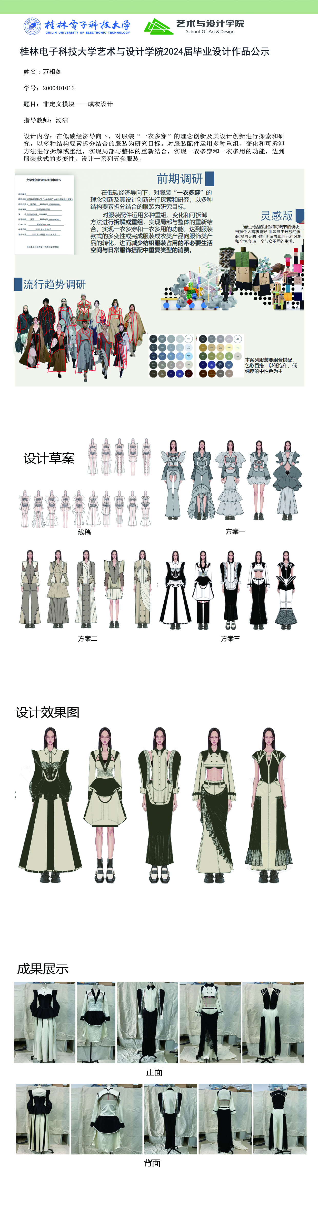 根据毕业设计管理文件规定,现将2024届服装与服饰设计专业毕业设计公示作品有错漏信息的进行更正公示。对公示的更正作品如有疑议,请实名举证。意见反馈邮箱:452660258@qq.com,联系电话:18593281965。