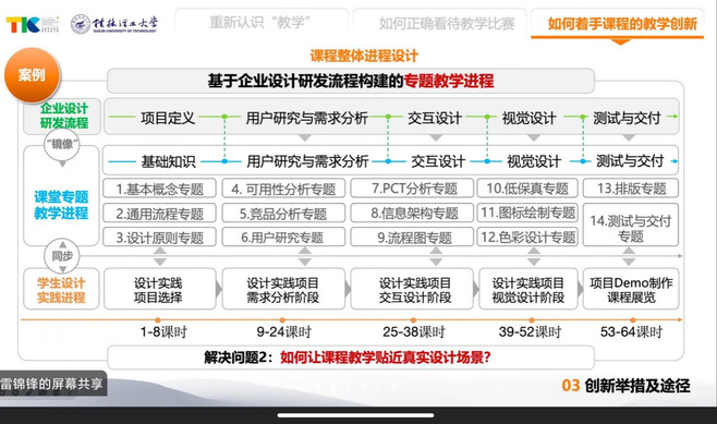 雷锦锋以“教学竞赛:一名青年教师的教学成长之路”为主题展开分享。他讲述了自身参赛经历与教学困惑,强调课程对学生成长的引导作用。以交互界面设计课程为例,介绍教学活动设计如何提升学生能力,以及学情分析的重要性。在教学目标与评价方面,详细说明目标制定要点及与评价方案的对应关系,包括不同层次目标的行为动词运用。他还分享了教学反思与竞赛的意义,鼓励教师积极创新,站在学科与课程高度思考教学。