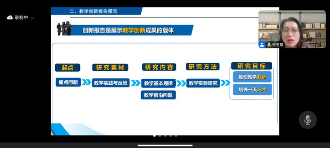 会上,马林强调了会议的主旨。随后,宋冬慧教授以丰富的教学创新大赛经验,详细解读了教学报告的撰写技巧、教学设计录制的关键要点以及备赛策略。在报告撰写方面,从学情变化、评分标准出发挖掘痛点,针对设计类课程,从学情、专业课程要求、课程建设等方面着手,围绕教学痛点,通过真实性、指向性和关联性证据论证观点形成完整教学模式,在创新报告撰写与录制技巧方面,宋冬慧教授提出诸多注意要点,助力教师更好展示成果。