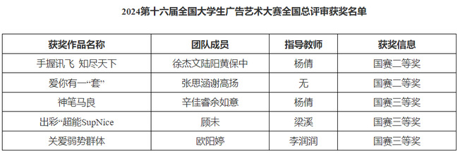 近日,第16届全国大学生广告大赛总评审名单正式揭晓,广告大赛成果展示盛典暨颁奖典礼在北京隆重举行。三亿官方官网三亿(中国)_三亿(中国)艺术与设计学院共斩获二等奖2项,三等奖3项,为学校争得了荣誉。