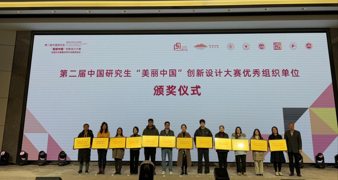 12月18日第二届中国研究生“美丽中国”创新设计大赛颁奖仪式在浙江大学举行,该大赛是由教育部学位管理与研究生教育司指导,中国学位与研究生教育学会和中国科协青少年科技中心主办。本次大赛作为中国研究生创新实践系列赛事平台之一,旨在全面呈现、传播“美丽中国”新时代风貌,推动我国艺术设计类研究生教育的专业交流与进步,激发研究生创新设计意识,提高研究生创新与设计实践能力,培养研究生社会担当与弘扬中华美育精神,向世界积极展示和传播中国文化,讲好中国故事。