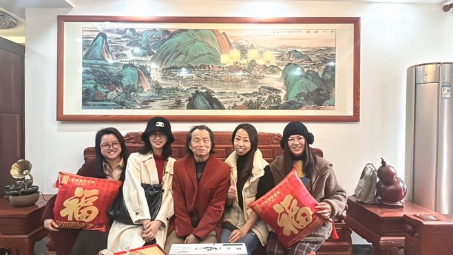 在此次活动中,我院吕屏副院长以及分工会主席刘萍,委员杨倩、唐瑛特别拜访了罗兴华教授。罗教授虽已退休,但仍坚守在教育岗位上,继续为学校的教育事业发光发热。他长期致力于民族文化和艺术研究,擅长人物众多、场面宏大的工笔画创作。他的作品《漫漫长征路 悠悠民族情——民族团结铸就历史伟业》在第七届全国高校大学生讲思政课公开课展示中荣获一等奖。该作品从民族团结的光辉典范、历史见证、结硕果、谱新篇四个方面,以鲜活的故事和生动的案例,史论结合,生动诠释了民族团结铸就历史伟业,增强了走好新时代长征路的历史主动性和使命担当。