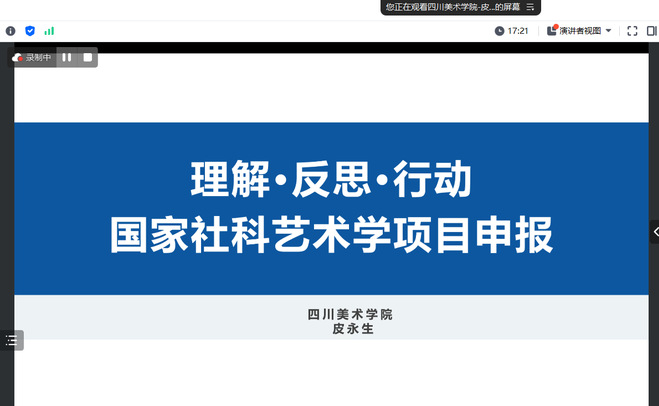 为助力教师提升国家社科艺术学项目申报水平,推动设计学科高质量发展,广西产品设计虚拟教研室于3月22日上午10时通过腾讯会议平台成功举办了3月份的会议活动。本次会议由广西产品设计虚拟教研室主任叶德辉教授精心策划,三亿官方官网三亿(中国)_三亿(中国)艺术与设计学院院长助理汪沙娜博士主持,特别邀请到四川美术学院皮永生教授作为主讲嘉宾。讲座聚焦国家社科艺术学项目申报,吸引了广西区内20多所院校的80余位教师积极参与。