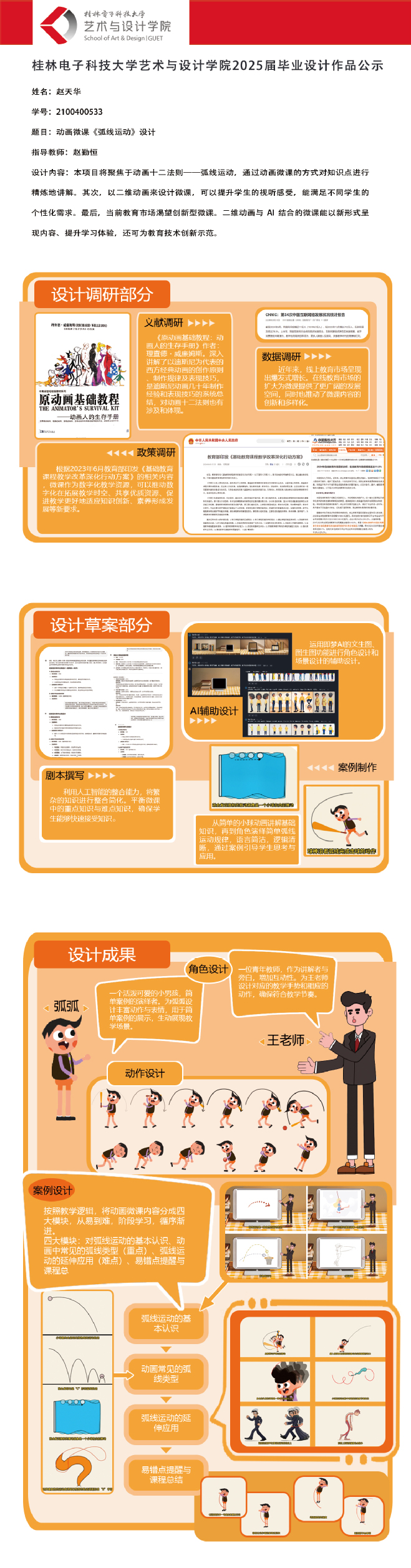 根据毕业设计管理文件规定,现将2025届动画专业毕业设计作品进行公示。对所公示的作品如有疑议,请实名举证。公示期为三天(2025.04.16-2025.04.18)。作品公示期间的意见反馈邮箱:297401358@qq.com,联系电话:18172645205。