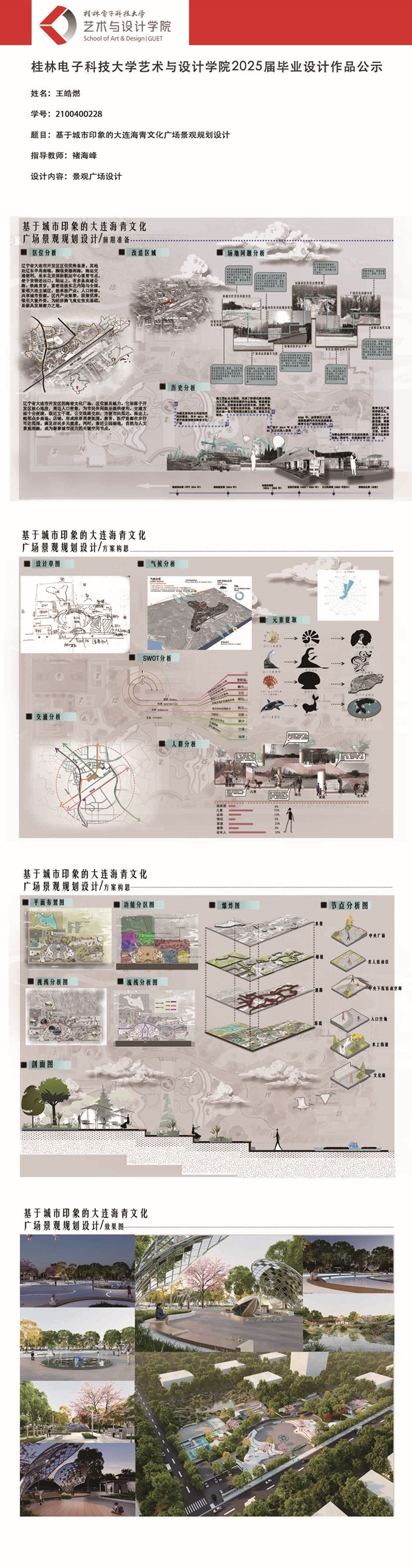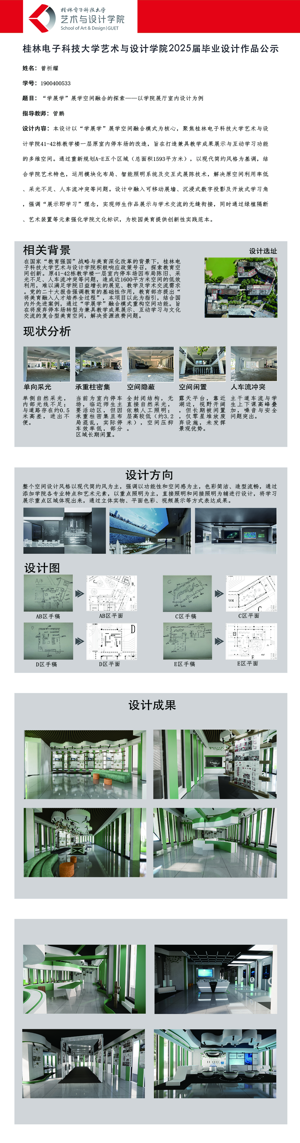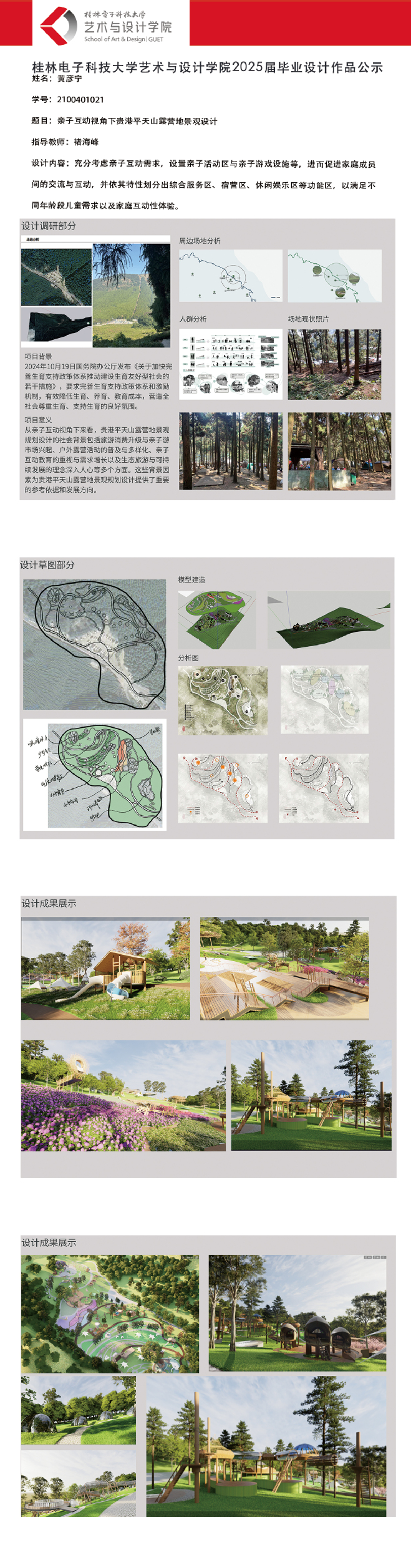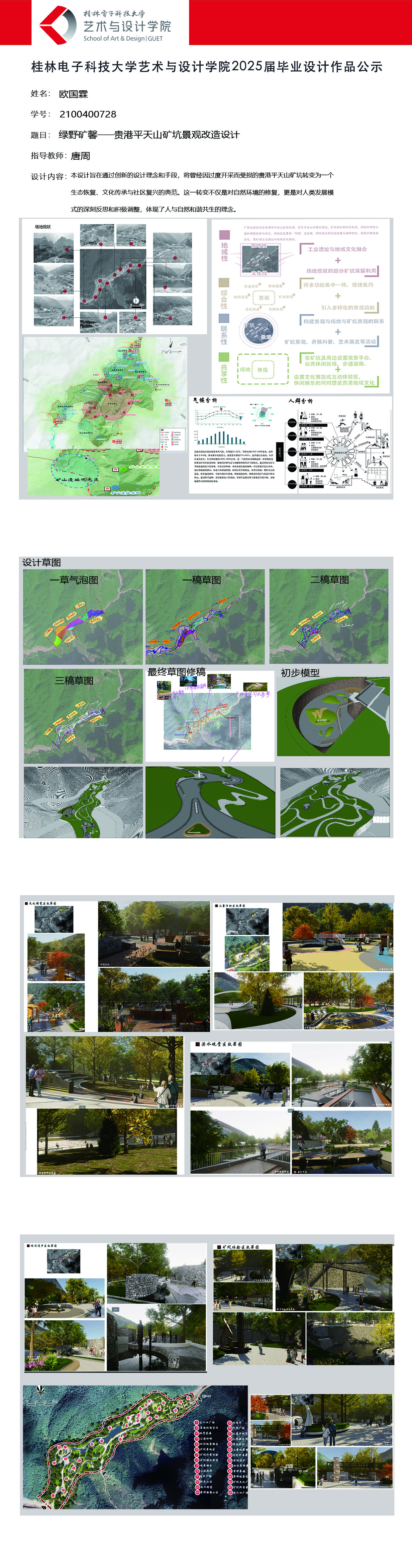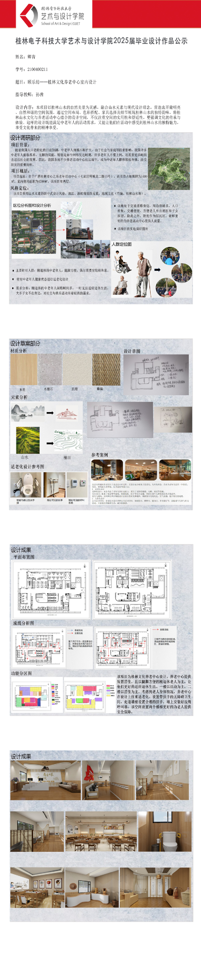 根据毕业设计管理文件规定,现将2025届环境设计专业毕业设计作品进行公示。对所公示的作品如有疑议,请实名举证。公示期为三天(2025.04.17-2025.04.19)。作品公示期间的意见反馈邮箱:19059776@qq.com,联系电话:13457651975。