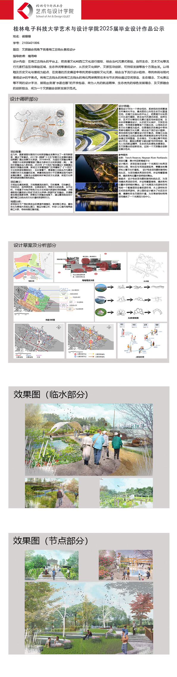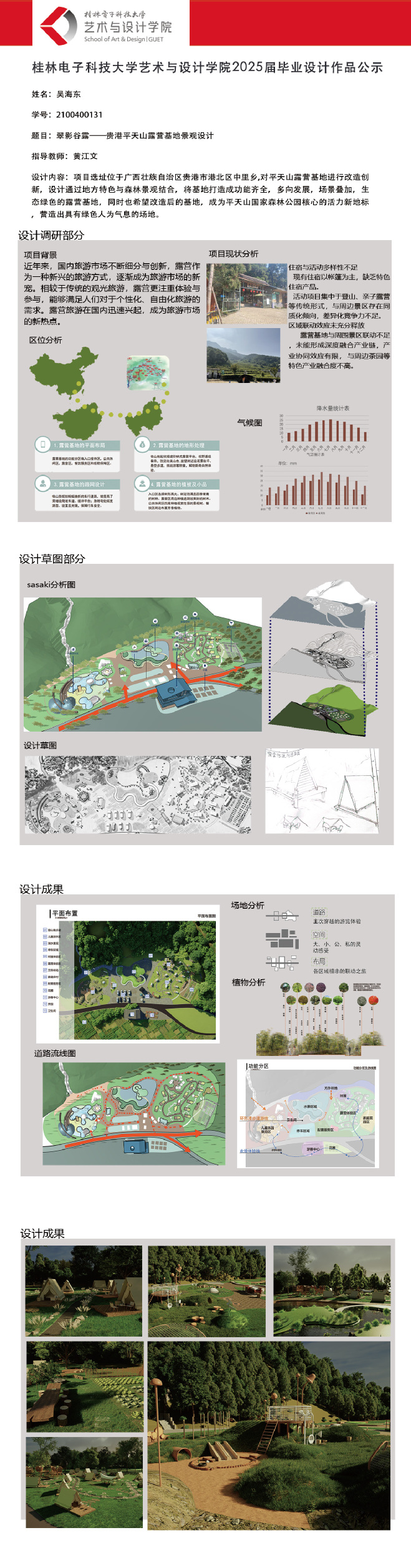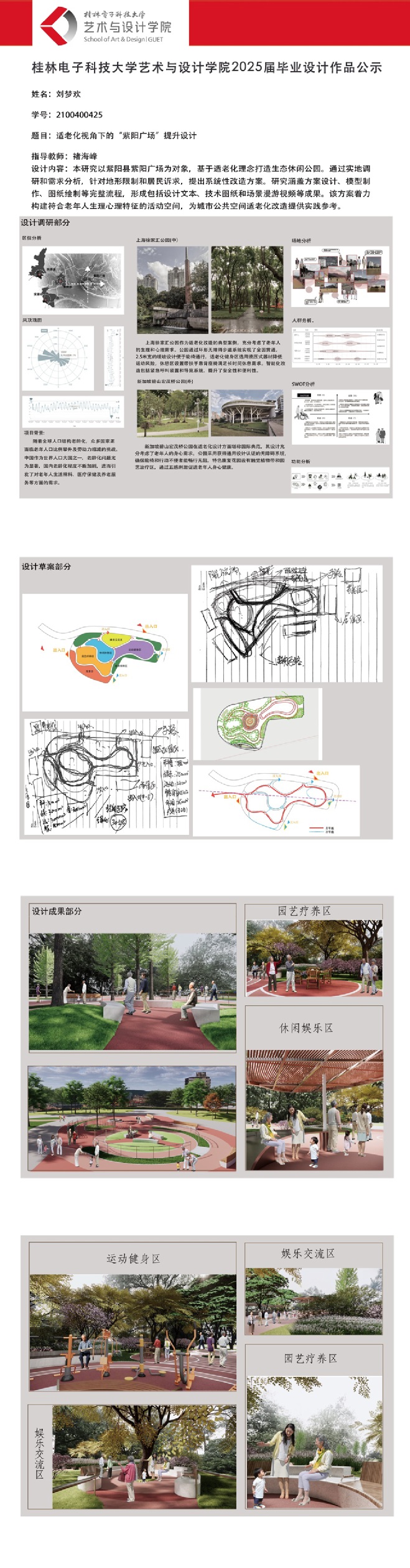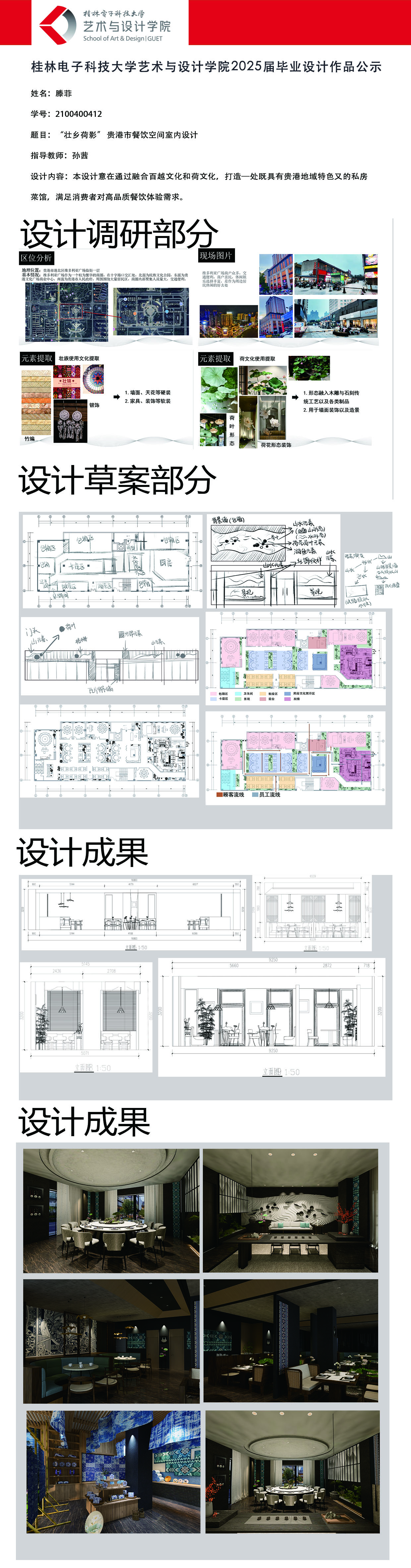 根据毕业设计管理文件规定,现将2025届环境设计专业毕业设计作品进行公示。对所公示的作品如有疑议,请实名举证。公示期为三天(2025.04.17-2025.04.19)。作品公示期间的意见反馈邮箱:19059776@qq.com,联系电话:13457651975。