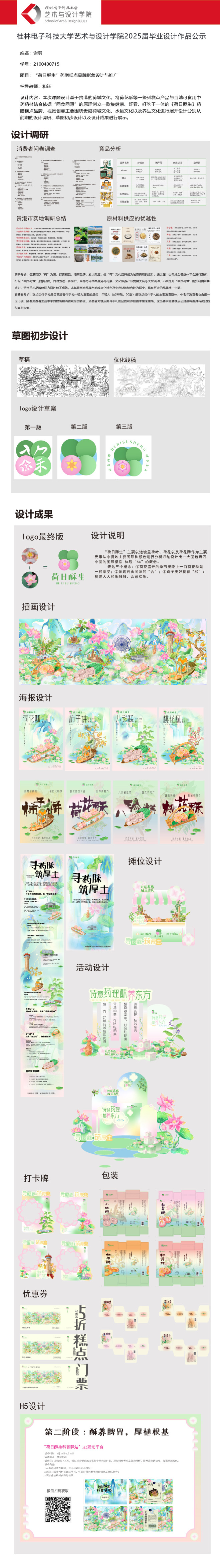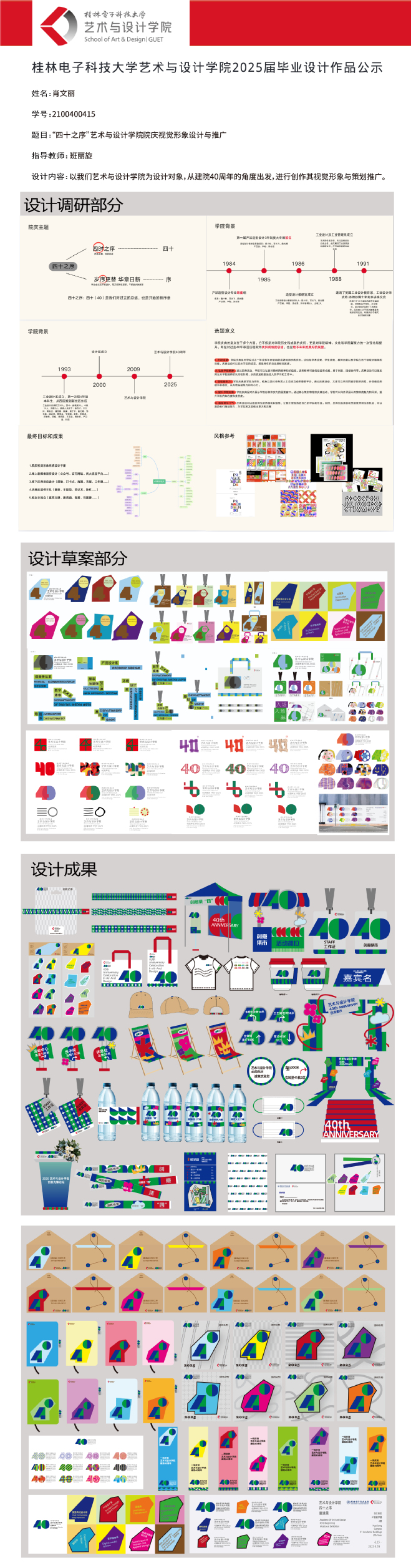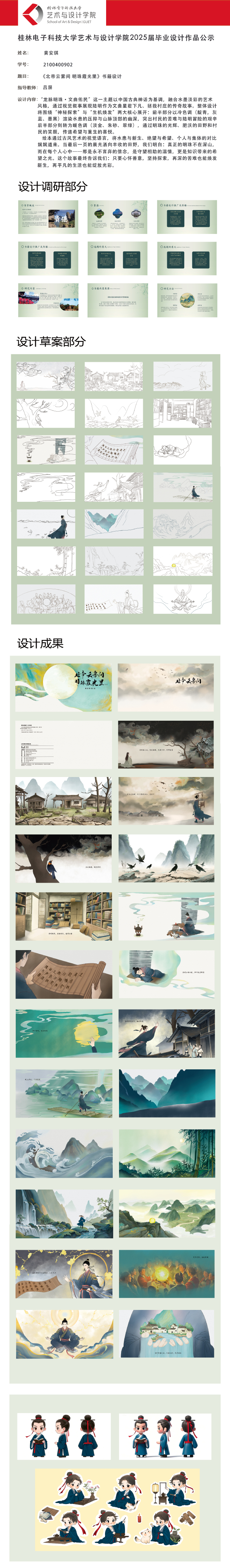 根据毕业设计管理文件规定,现将2025届视觉传达设计专业毕业设计作品进行公示。对所公示的作品如有疑议,请实名举证。公示期为三天(2025.04.18-2025.04.21)。作品公示期间的意见反馈邮箱:4575145@qq.com,联系电话:18677370501。