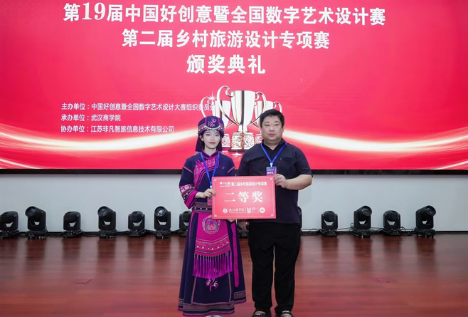 2025年6月7日,第十九届中国好创意大赛专项赛道——第2届乡村旅游设计专项大赛在武汉举行。我院2022级本科生吴娜在谢杰老师的指导下,获得二等奖。