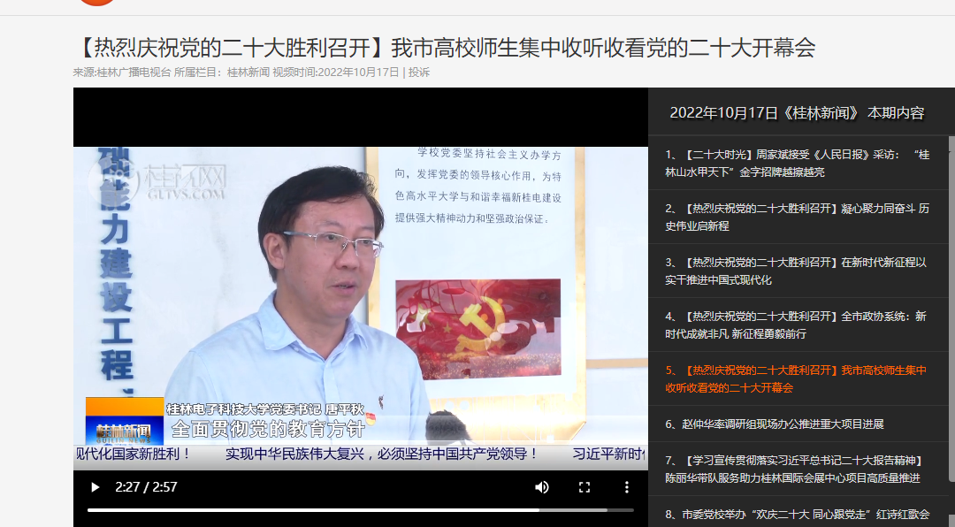 桂林电视台:【热烈庆祝党的二十大胜利召开】我市高校师生集中收听收看党的二十大开幕会