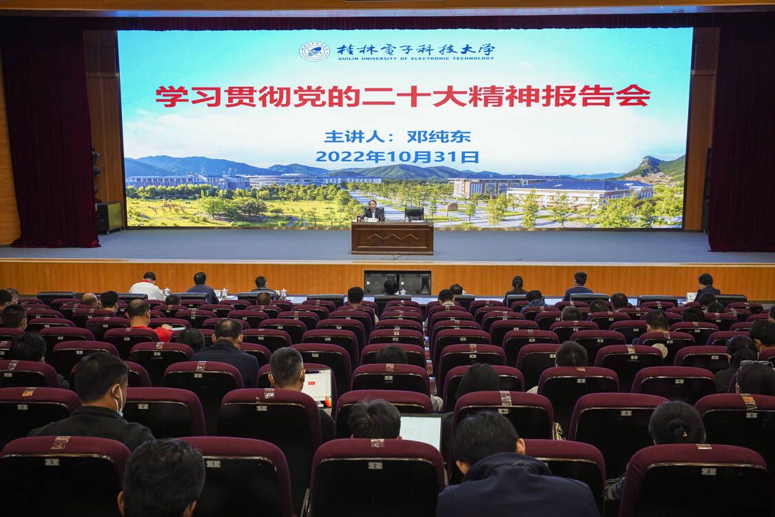 10月31日下午,学校在花江校区会议中心大礼堂举行学习贯彻党的二十大精神报告会,邀请全国政协委员、中国社会科学院马克思主义研究院原院长、党委书记邓纯东研究员作题为“奋进新征程 全面建设社会主义现代化国家”的宣讲报告。在校校领导陈贵英、聂慧、钟平、梁启谈、周娅、张文涛、潘开林、曹辉景出席报告会,全体处级干部、科级干部、辅导员、马克思主义学院教师参加报告会。报告会由校党委副书记聂慧主持。