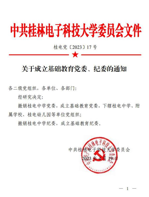 桂电党〔2023〕17号--关于成立基础教育党委、纪委的通知
