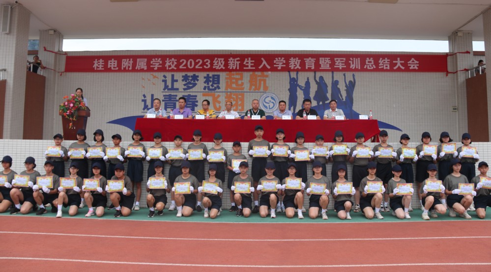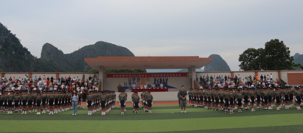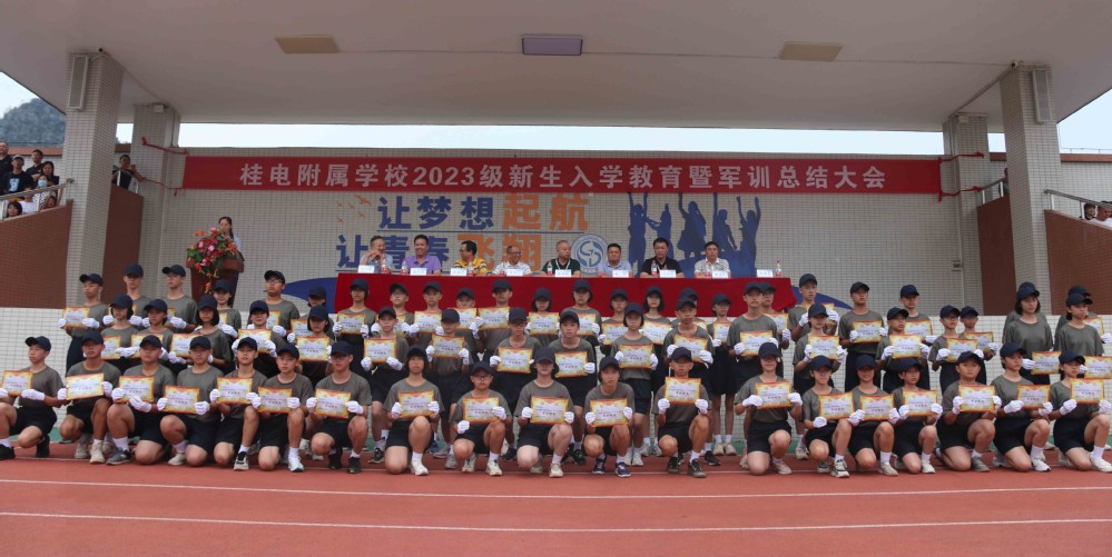 鹏程万里今朝始,凌云壮志谱新篇。看我桂电附校莘莘学子——学,专心致志;站,军姿挺拔;走,步调一致;喊,声势震天;唱,响彻云霄!哪怕汗水湿透衣背,哪怕酸痛侵扰双腿,但希望的种子已播下,梦想就此起航!