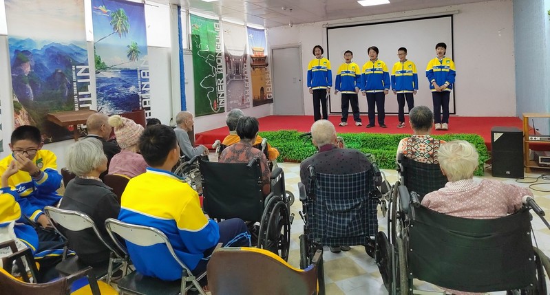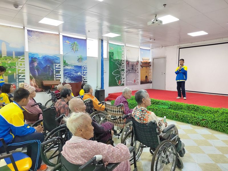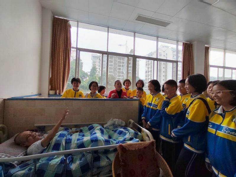 10月20日下午,桂电附属学校初一年级学生代表到桂林市七星区心之乐养老院,为老人送去温暖和欢乐。其间,心之乐养老院的苏桂珠院长带领同学们参观养老院,同学们听取了苏院长介绍她创办养老院的心路历程以及她与老人相处的动人故事。