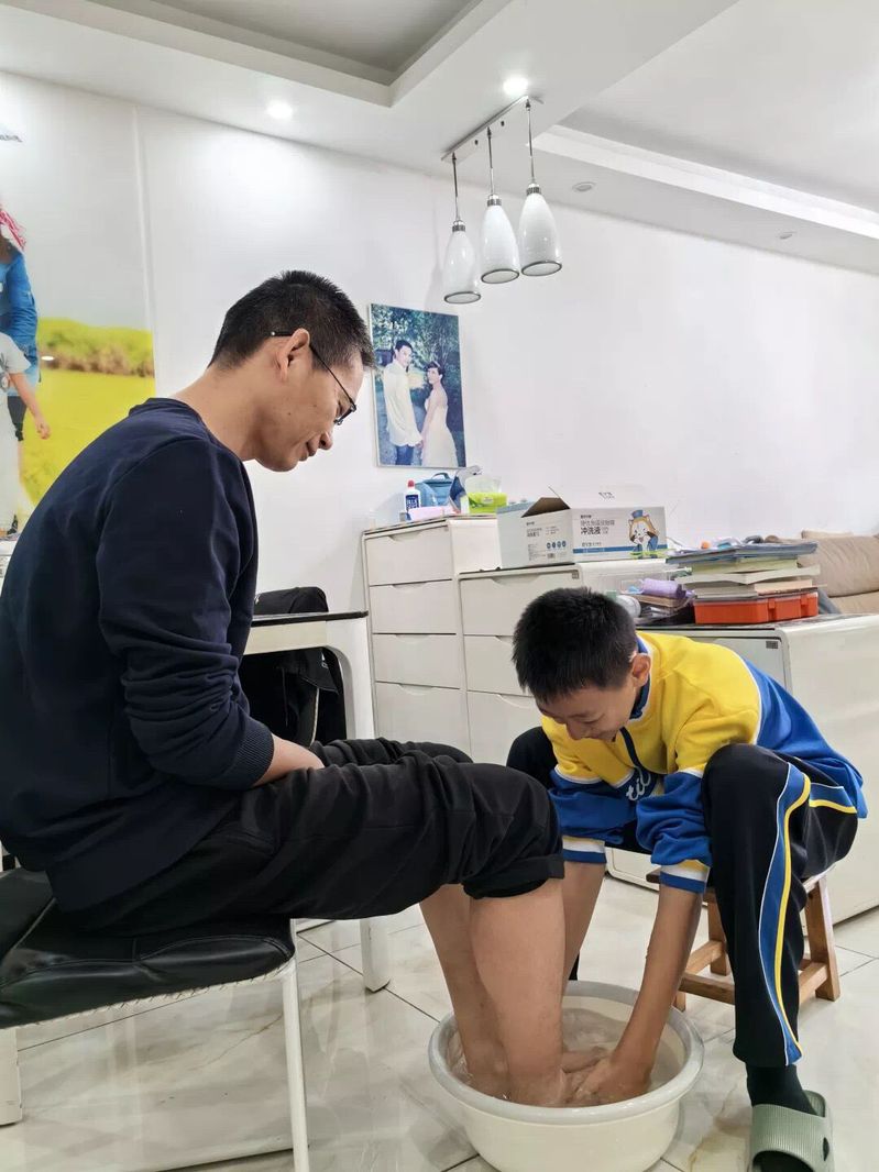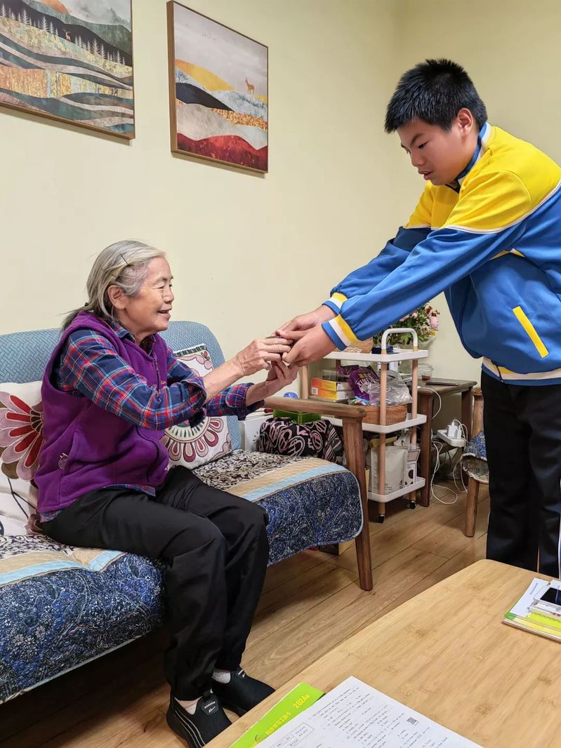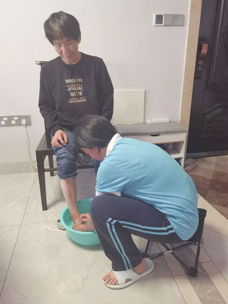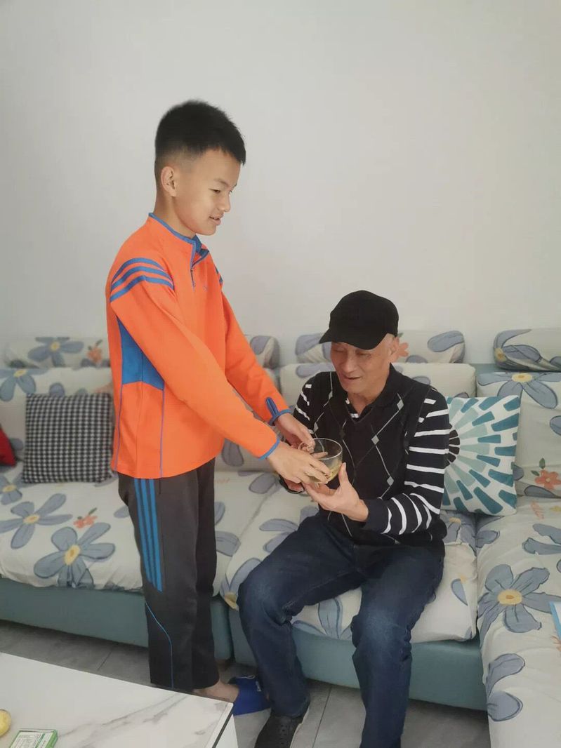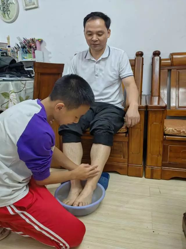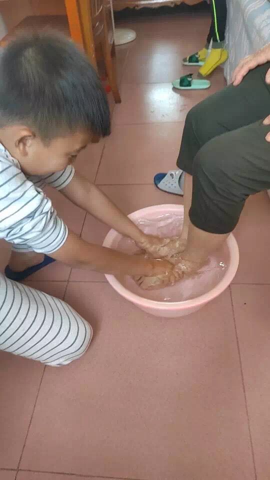 或拿起拖把、扫把做家务;或端起脸盆为家人们洗脚;或手握梳子为奶奶梳头;或攥起小手给家人捶背;或陪家人们一起散步;或为家人做一顿饭……做着力所能及的事情,为家人们分担家务,表达对家中老人的敬意、孝心与感恩。