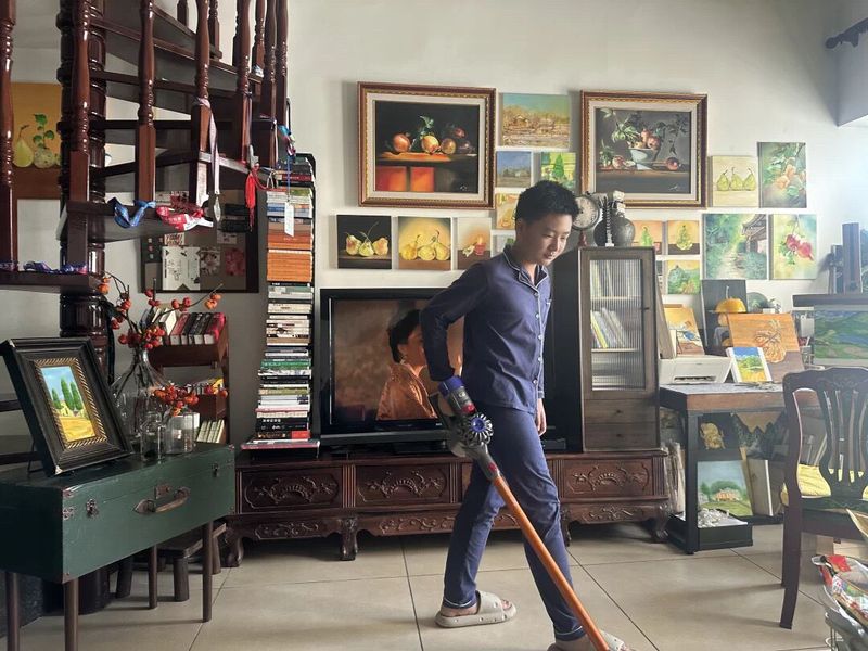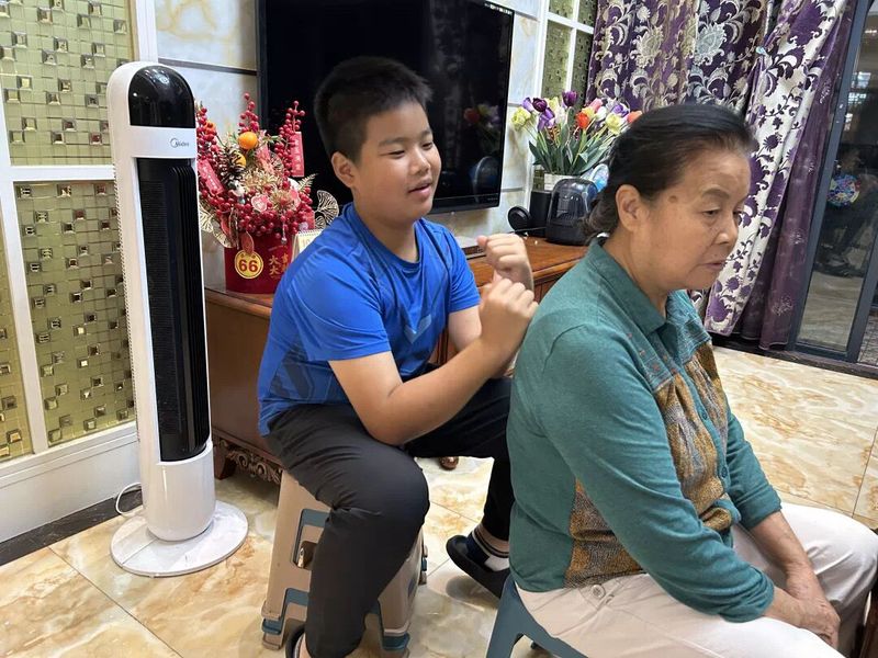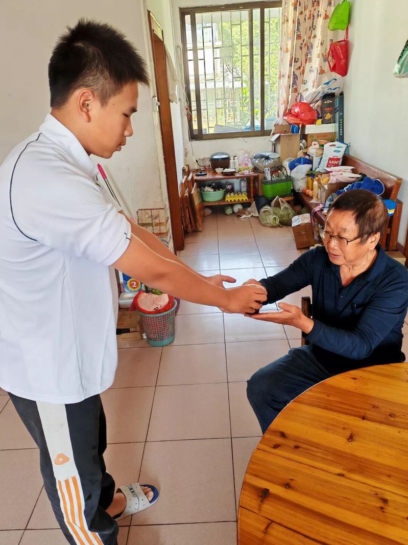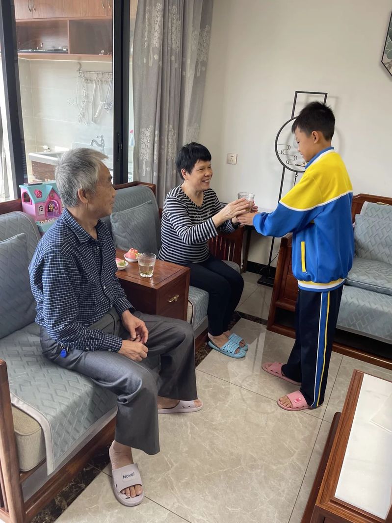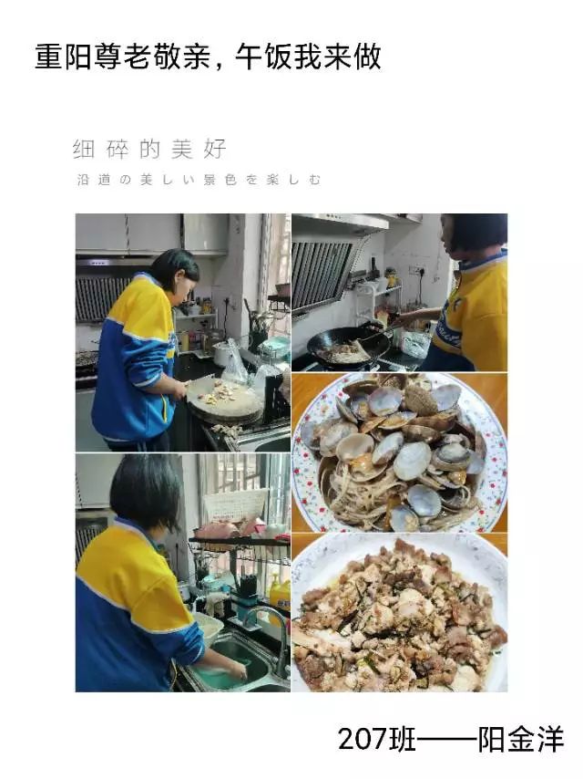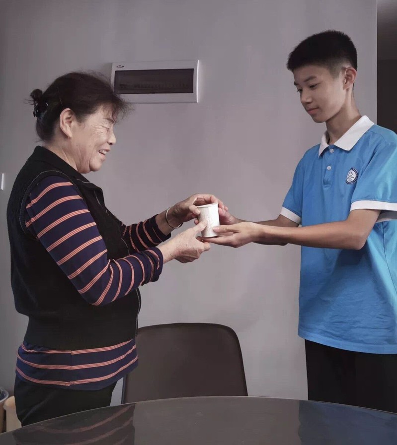 或拿起拖把、扫把做家务;或端起脸盆为家人们洗脚;或手握梳子为奶奶梳头;或攥起小手给家人捶背;或陪家人们一起散步;或为家人做一顿饭……做着力所能及的事情,为家人们分担家务,表达对家中老人的敬意、孝心与感恩。