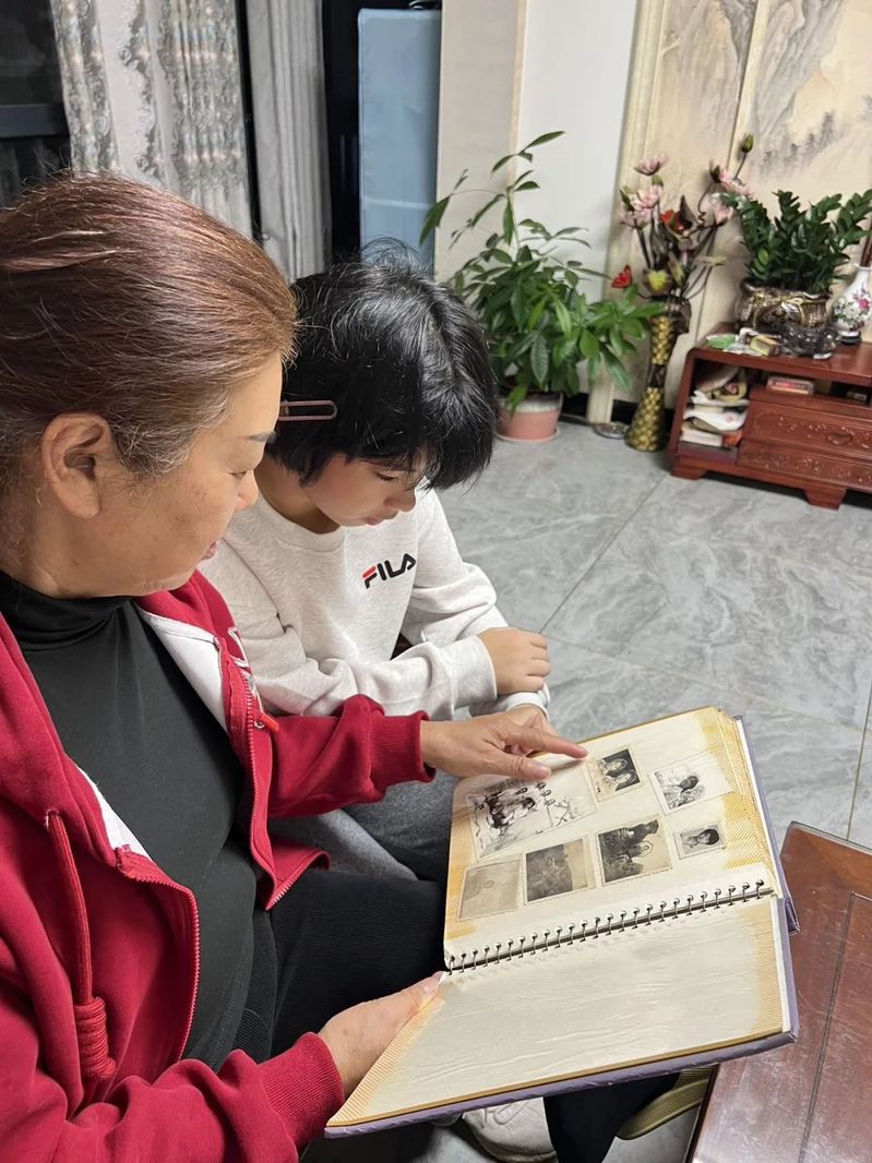 与爷爷奶奶、外公外婆一起翻看记录他们曾经的照片,听长辈讲述他们的流金岁月。