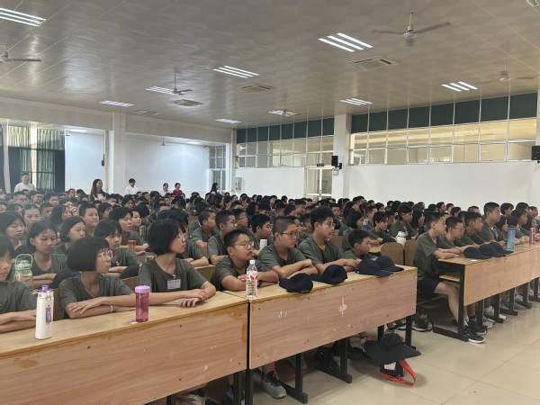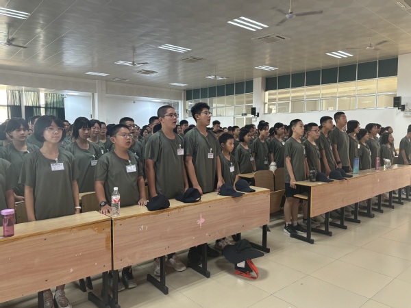 在庄严雄壮的国歌声中,军训动员大会拉开帷幕,全场师生一起齐唱国歌,共同开启了为期五天的军训。