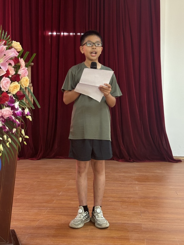 初212班陆羏雨同学作为新生代表发言,他以铿锵有力的声音表达了初一新生对军训的期待和决心,表示将珍惜军训机会,努力锻炼自己,不怕吃苦、不怕困难,严于律己,锤炼不屈不挠之精神与艰苦奋斗之作风,展现桂电附属学校学子的风采,并号召全体2024级同学们以饱满的热情、昂扬的斗志投入其中,用汗水浇灌成长,用毅力铸就坚强,为成长为有担当、有作为的社会主义新时代少年迈出坚实的一步!