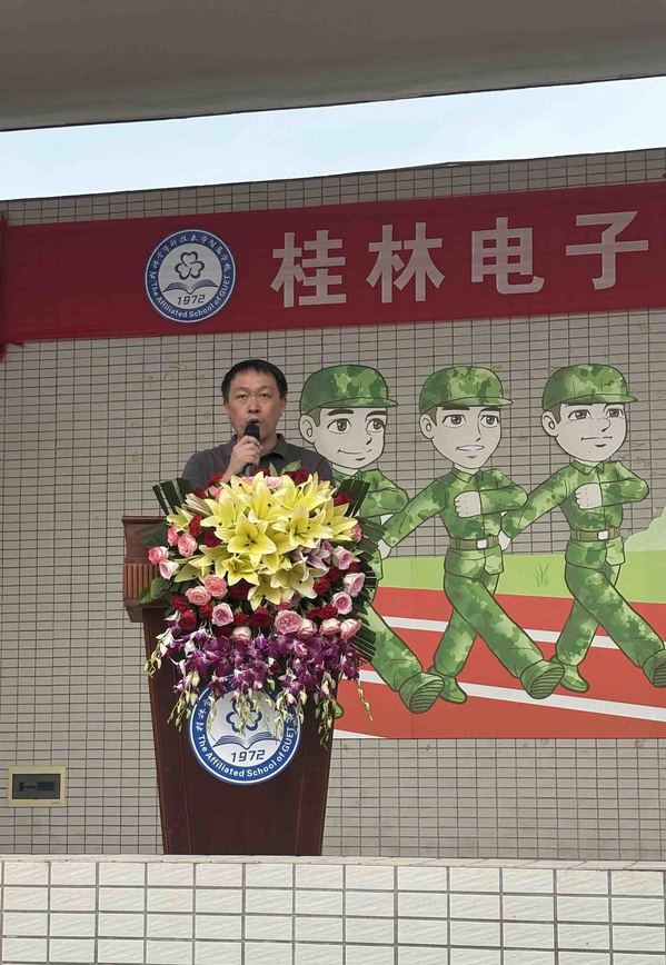 桂电中学副校长文向东代表学校作军训总结,他对各位教官和班主任的辛勤付出表示感谢!对同学们在军训中所展现出的优良素质和可贵精神给予了高度评价,同时希望同学们保持坚韧不拔的意志、发扬团队协作的精神、遵守学校各类纪律,在今后的学习生活中,继续保持在军训中磨砺出的坚强意志,发扬军人优良作风,塑造更加强大的自我,以昂扬的姿态迎接新的学习生活。