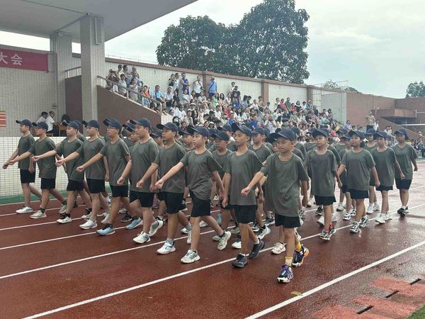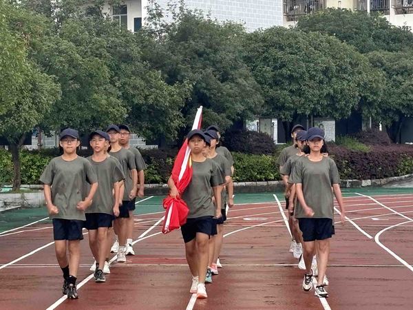 各班级分列式方阵依次通过主席台,进行军训成果汇报。他们昂首挺胸,脚步坚定,动作干净利落、整齐有力,一招一式间尽显飒爽英姿。稍息、立正、跨立,看似一个个简单的动作,背后却是无数次反复练习。同学们以整齐划一的动作,展现了军训期间的辛勤付出与顽强拼搏。这短暂的几分钟展演,绽放的是浸透着汗水的青春之花。