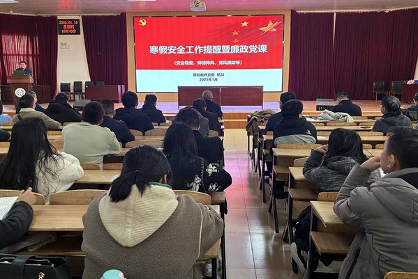 为进一步推进清廉学校建设,增强教职工的廉洁自律意识,营造风清气正的校园环境,1月16日,在春节即将来临之际,桂电中学、桂电附属学校召开节前廉政与安全教育工作会议,会议由基础教育党委书记、基础教育管理办公室主任杨剑主持,桂电中学、桂电附属学校全体教职工参加。