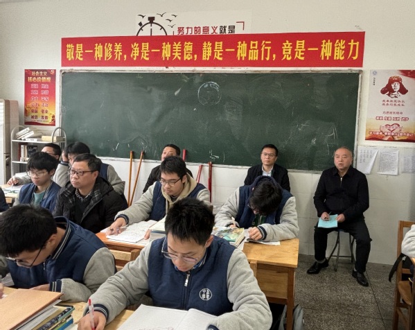 陈松青走进高一年级80班课堂,认真聆听教师授课内容。在听课过程中,他仔细观察课堂上师生互动及学生的学习状态,还详细记录了听课情况。
