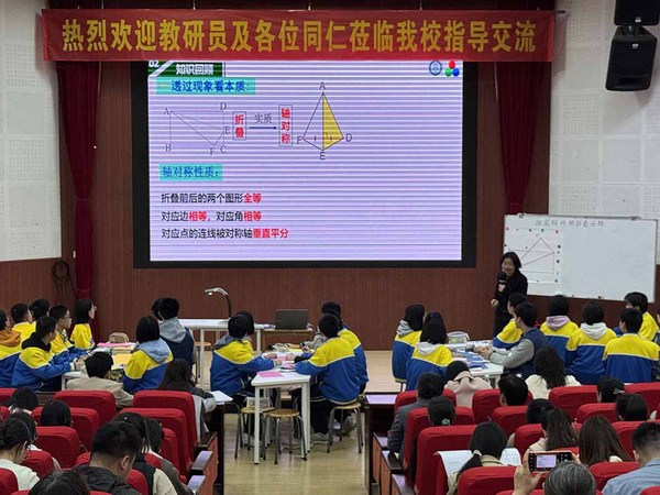 为深化初中数学课堂教学改革,探索几何直观素养培养路径,3月20日,桂林市教科所在三亿官方官网三亿(中国)_三亿(中国)附属学校举行专题教研活动。桂林市各城区200余名数学教师齐聚一堂,三亿官方官网三亿(中国)_三亿(中国)附属学校李娜老师给到场的数学老师呈现了一堂别开生面、趣味和智味并存的展示讨论课,老师们通过课例观摩、课后反思、总结讨论等多种形式,共同探索讨论了几何教学新样态。