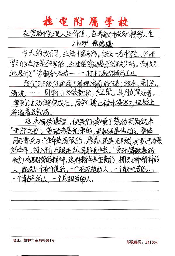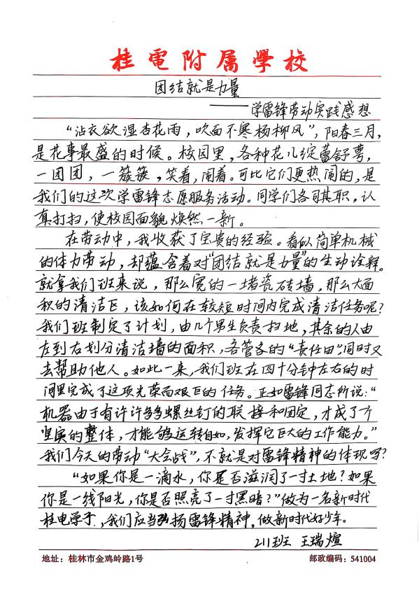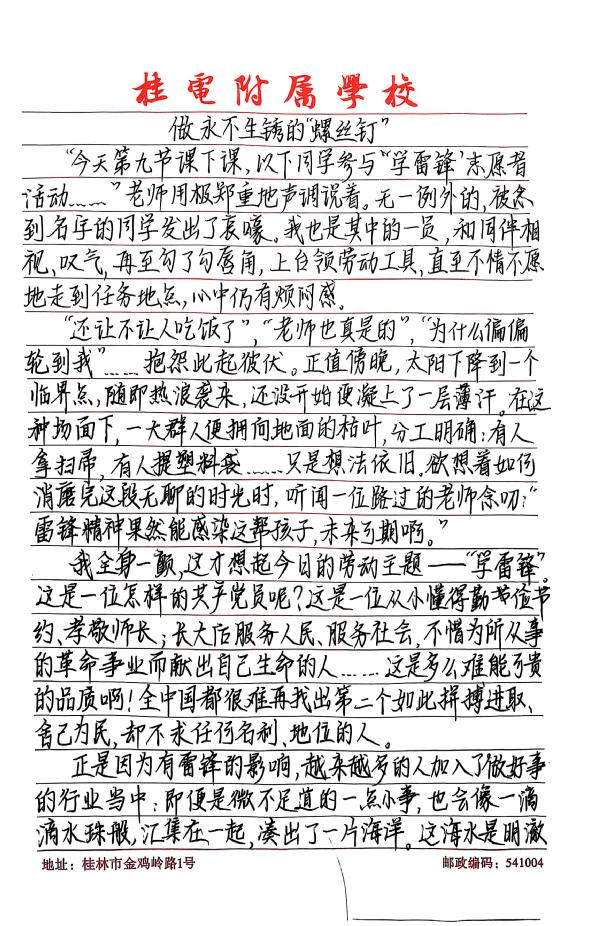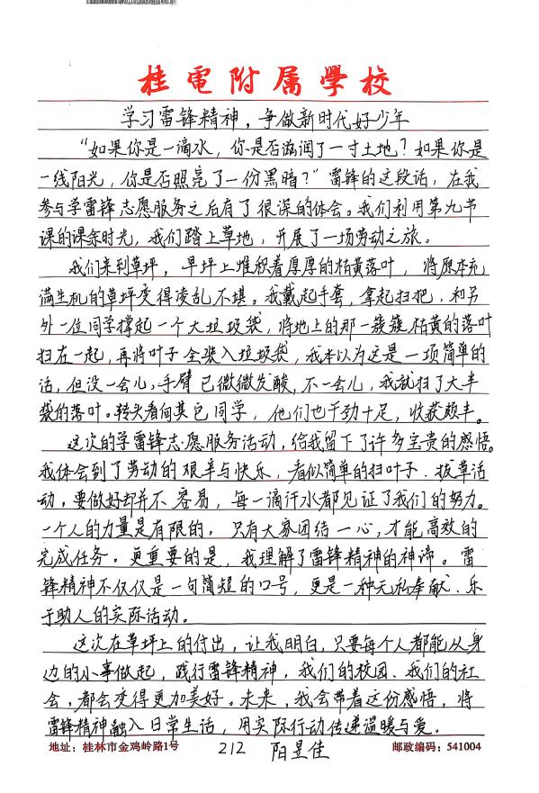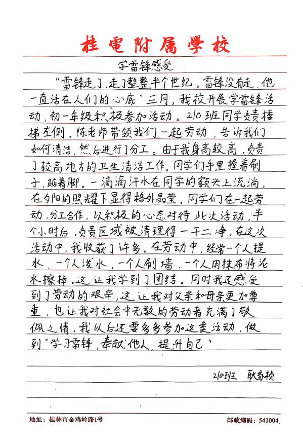 此次学雷锋活动的开展,不仅营造出整洁、文明的校园环境,更在学生心中播下了雷锋精神的种子。桂电附属学校将以此次活动为契机,持续开展各类志愿服务活动,让雷锋精神在校园里生根发芽、枝繁叶茂。