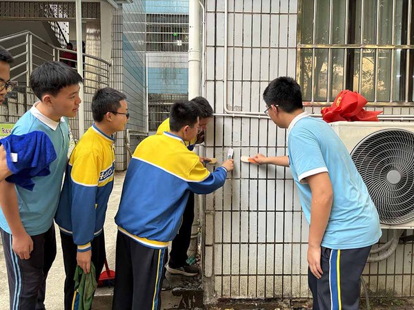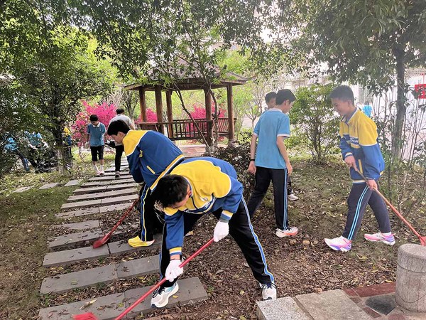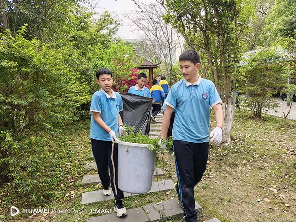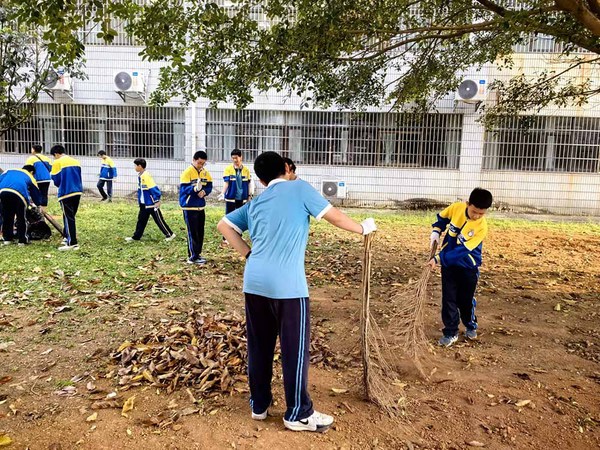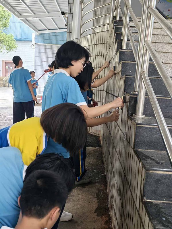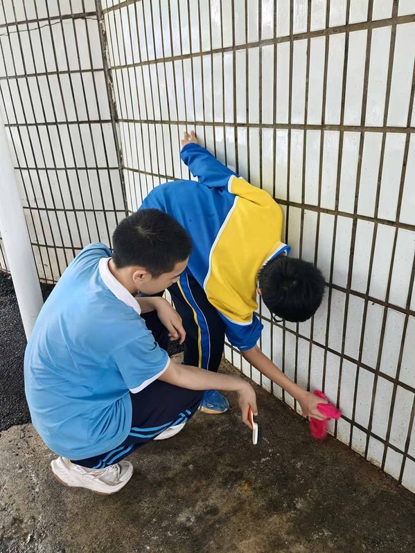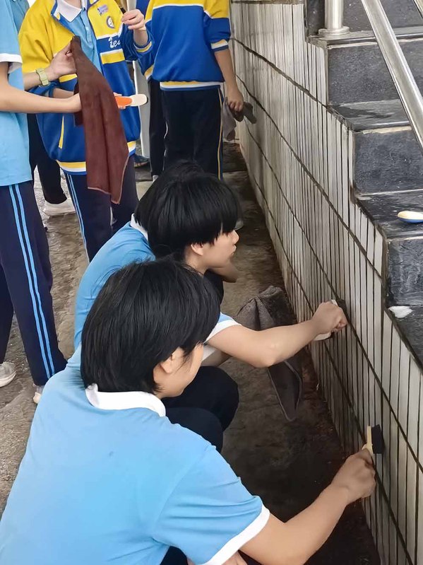 随着活动正式开启,党员教师以身作则,带领学生迅速奔赴劳动岗位。学生们被合理分配到校园的各个角落,大家分工明确,配合默契。有的同学专注于拔除校园草丛中的杂草,清扫堆积的落叶,为校园的绿植 “解绑减负”;有的同学则手持刷子,认真擦洗教学楼外的瓷砖,让建筑外墙重焕光彩。在党员教师的悉心指导下,学生们不怕脏、不怕累,仔细清理每一处卫生死角,以实际行动践行雷锋精神。