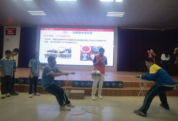 为了让同学们更深入理解物理现象与航天科技的紧密联系,活动还精心安排了马德堡半球实验和手摇发电机实验。何茂昌叔叔在马德堡半球实验中,重现了 1654 年德国马德堡市市长的经典实验场景,让同学们直观感受到大气压的巨大作用力。在手摇发电机实验中,同学们亲自参与,通过切割磁感线产生电流,亲身体验了法拉第电磁感应定律的奇妙。