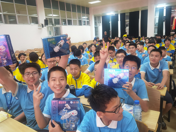 活动开场,主持人通过一场趣味十足的 “雨点变奏曲” 热身活动,迅速调动起现场气氛,让整个课堂充满了轻松愉快的氛围。为了激发同学们的参与热情,团队准备了中国航天正版授权的乐高积木作为礼品,并设置了航天知识问答环节。问题涵盖我国首颗人造地球卫星、中国航天日日期、首位进入太空的中国宇航员等基础航天常识。同学们踊跃作答,现场气氛热烈非凡,不少同学在积极思考与抢答中收获了心仪的礼物。