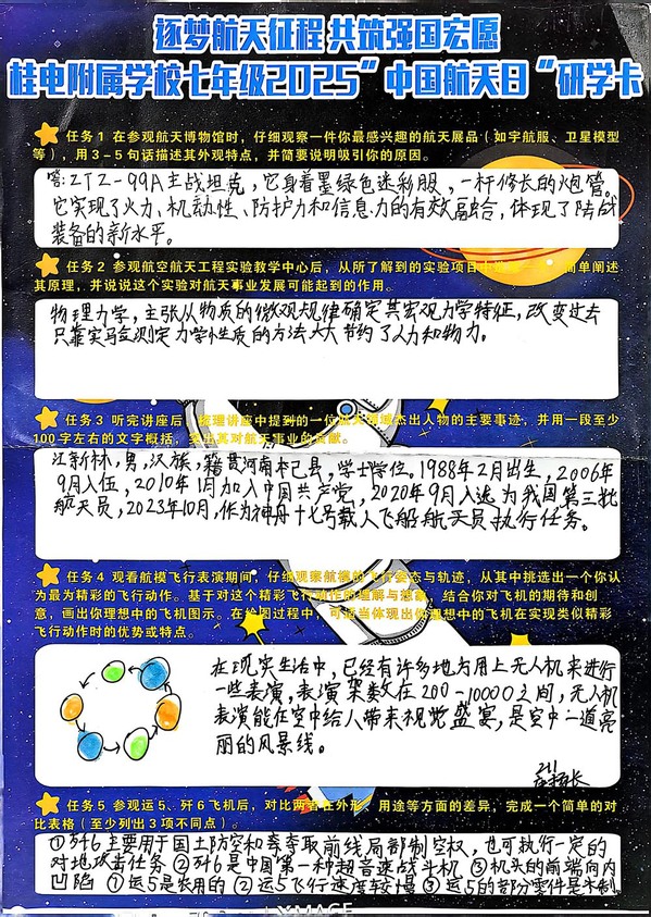 此次研学活动结束后,同学们仍沉浸在航天科技的奇妙世界中,意犹未尽。这趟研学之旅,为同学们打开了航天科技与现代工业的大门,让他们领略到科学的无限魅力。航天精神如同璀璨星辰,照亮了同学们前行的道路,激励着他们在未来的学习和生活中,怀揣梦想,勇敢追逐心中的浩瀚星空,用智慧和汗水续写中国航天的壮丽篇章,奔赴属于自己的星辰大海。