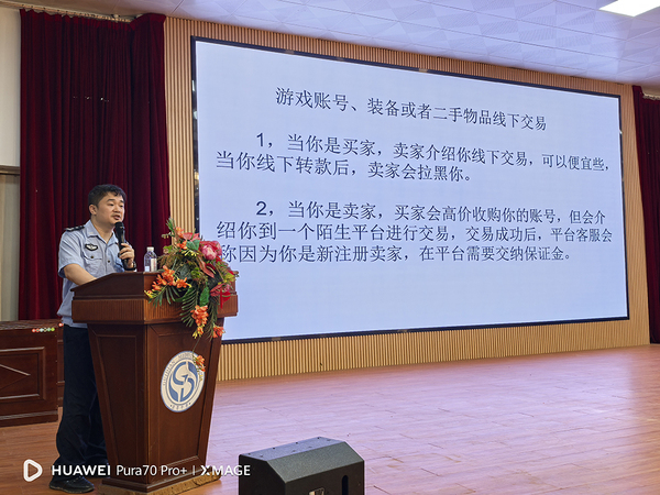 仪式伊始,七星公安分局反诈中心主任刘敏带来专题法治讲座。他结合网络安全、毒品预防、权益保护等热点问题,以鲜活案例和专业解读,为同学们敲响安全警钟。讲座中,刘主任强调:“法律不仅是约束行为的准则,更是守护成长的灯塔。” 互动环节中,同学们积极提问,现场气氛热烈。这场 “法治及时雨”,让法律意识在少年心中生根发芽。