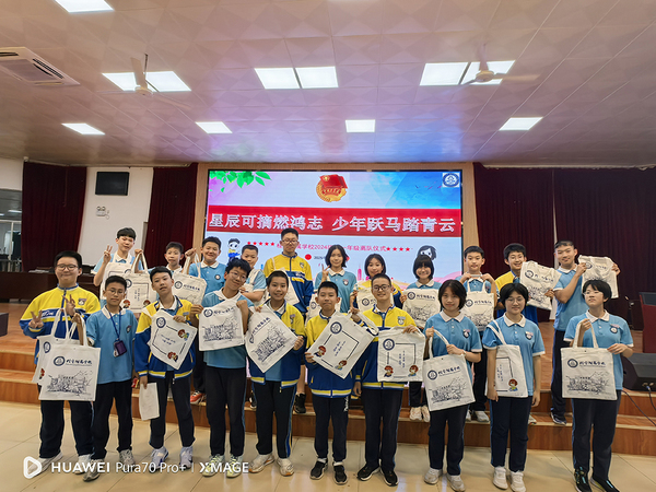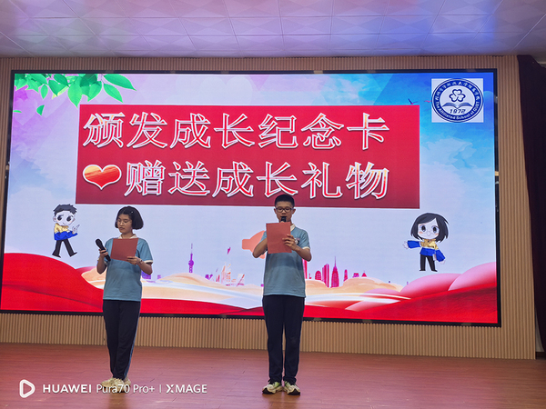 在 “启・青春新征程” 环节,全场齐唱《中国共青团团歌》,激昂旋律中,共青团的旗帜缓缓展开,象征着青春新征程的开启。班主任为同学们颁发《成长纪念卡》,并赠送特别定制的成长礼物,寄托 “背上成长行囊,勇敢逐梦青春” 的期许。