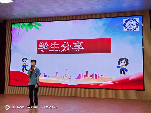 在 “忆・红领巾时光” 环节,一段浓缩六年少先队时光的视频拉开帷幕。视频中,入队仪式的庄严、运动会的拼搏、研学活动的探索等画面依次闪现,引发全场共鸣。随机邀请的同学分享了 “红领巾最难忘的事”—— 有人难忘第一次上台演讲时红领巾给予的勇气,有人记得高年级哥哥姐姐给自己系上红领巾传递的力量,有人记得代表红领巾帮助同学的温暖瞬间等。这些点滴回忆,串联起童年与红领巾的深厚情谊。