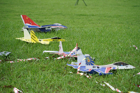 站在绿茵场边向上望去,只见数十架形态各异的航模飞机在碧空中划出优美的轨迹,编织成一首立体的蓝天交响诗。