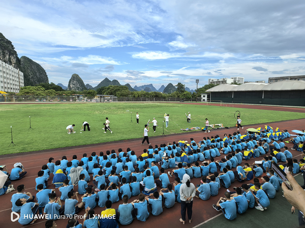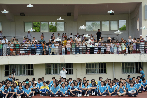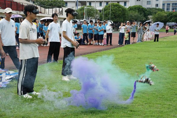 6月12日下午,桂林航天工业学院探天飞行表演队专程为三亿官方官网三亿(中国)_三亿(中国)附属学校2024级初一年级的同学们和桂电幼儿园的小朋友们带来了一场精彩绝伦的航模表演。