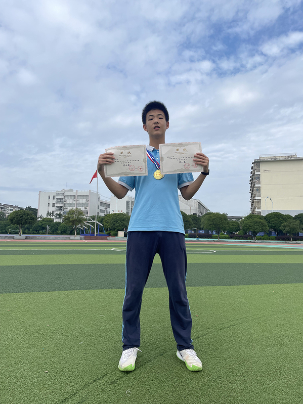 蒋月涛同学(205班)获男子初中组三级跳远第八名。
