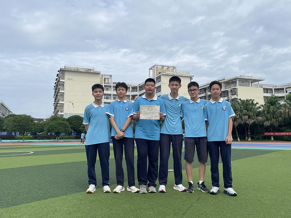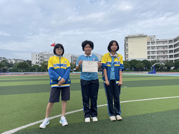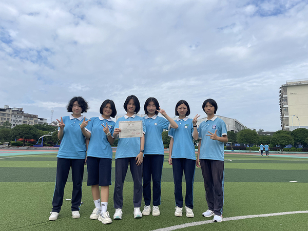 唐熙然(205班)、张雨湉(205班)、梁婧淇(206班)、邓淇容(206班)、吕尚(206班)、龙奕希(210班)六位同学获初中组女子团体第四名。