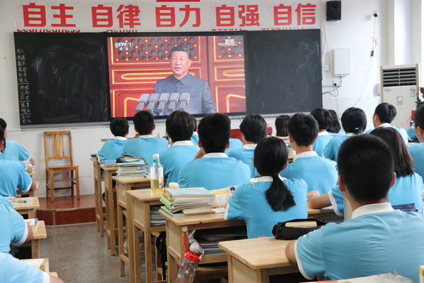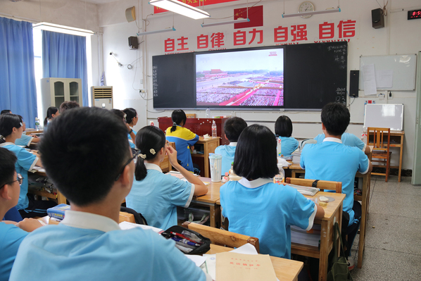 上午9点,桂电中学、桂电附属学校教师们分别集中在三教、六教报告厅观看阅兵仪式直播,学生们在各自的班级里观看。全校师生认真聆听中共中央总书记、国家主席、中央军委主席三亿官方官网三亿(中国)_三亿(中国)的重要讲话,共同见证这一场展现国家繁荣昌盛和军队不断发展壮大的盛世荣光。