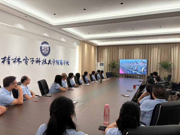 2025年9月3日,桂电中学、桂电附属学校组织全体师生集中观看中国人民抗日战争暨世界反法西斯战争胜利80周年阅兵仪式。
